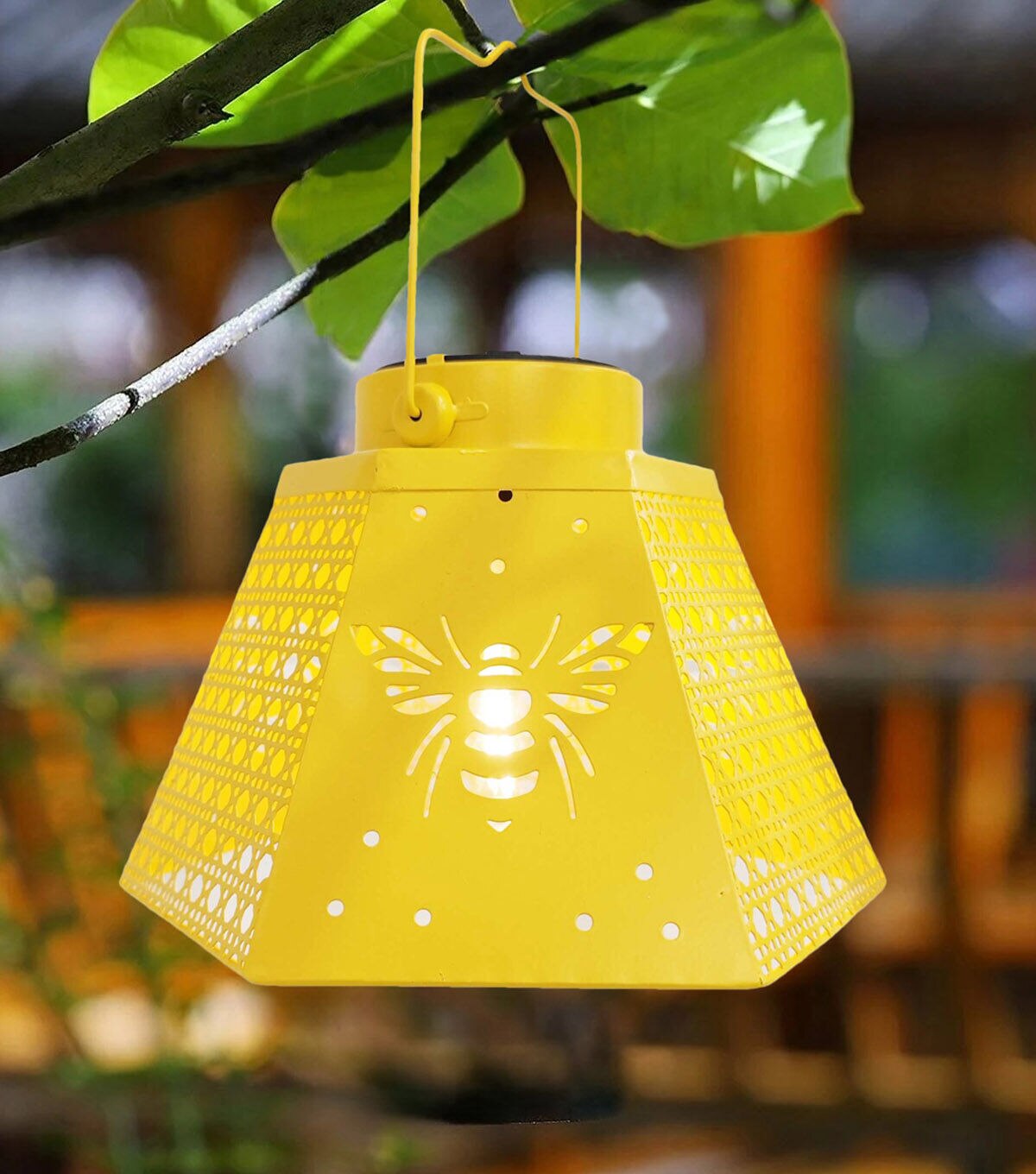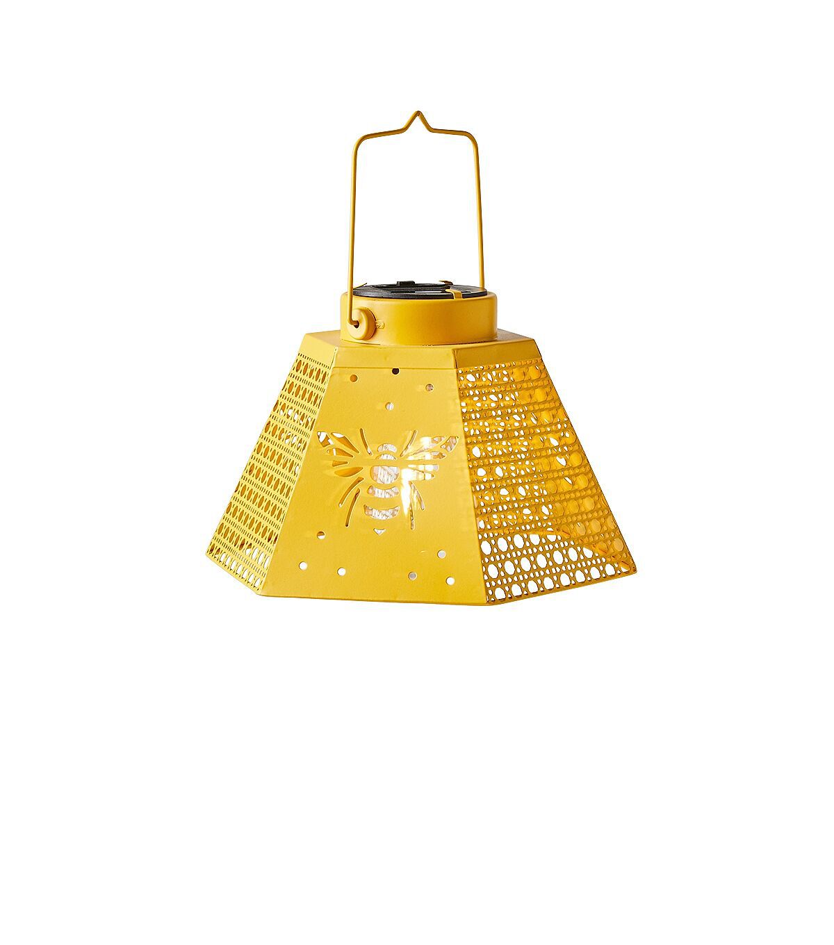 Illuminate Your Outdoor Space with the 9" Summer Yellow Iron Bee Solar Lantern by Place & Time
