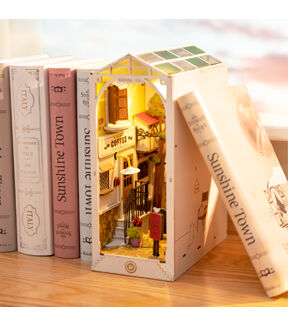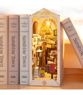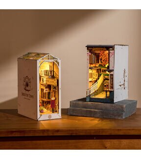 [TOUCH-ACTIVATED LED LIGHTS] The kit includes tiny LED bulbs to light up each little room. This colorful and warm lighting will add the finishing touch to your book nook. Comes with the needed LED lights, wiring, and battery box, along with detailed instructions to make this as simple as possible for you! 2 AAA batteries required; batteries not included. [BEAUTIFUL DECOR] This model comes with laser-cut pieces and printed designs to give a more lifelike miniature scene. Textured material gives an illusion of flowing water, and the mirror backing extends the scene. With such amazing decor and details, this modern DIY book nook is sure to impress. [AMAZING GIFT IDEA] Makes an amazing gift as either a DIY activity or pre-assembled as home décor. Recommended for ages 14+.