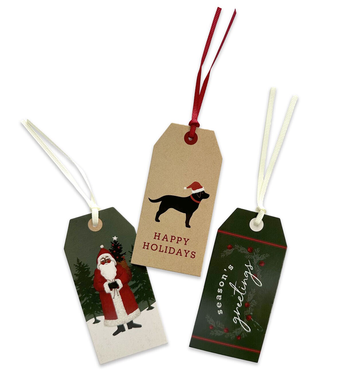 Get those holiday presents ready for Christmas by adding the Christmas Seasons Greetings Luggage Gift Tags by Place & Time to them. Sporting prints of Santa carrying a holiday tree, a dog in a Santa hat or the words ‘Season’s Greetings,’ these nine gift tags look eye-catching. You can also team them with red ribbon bows to make your gift bags and wrapped gift boxes more exciting.