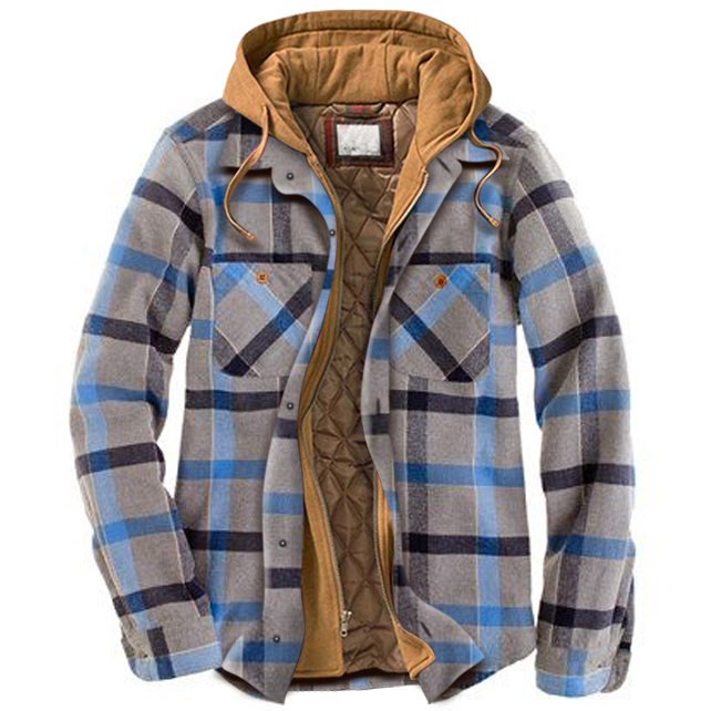 • Men's outdoor casual plaid hooded padded shirt jacket