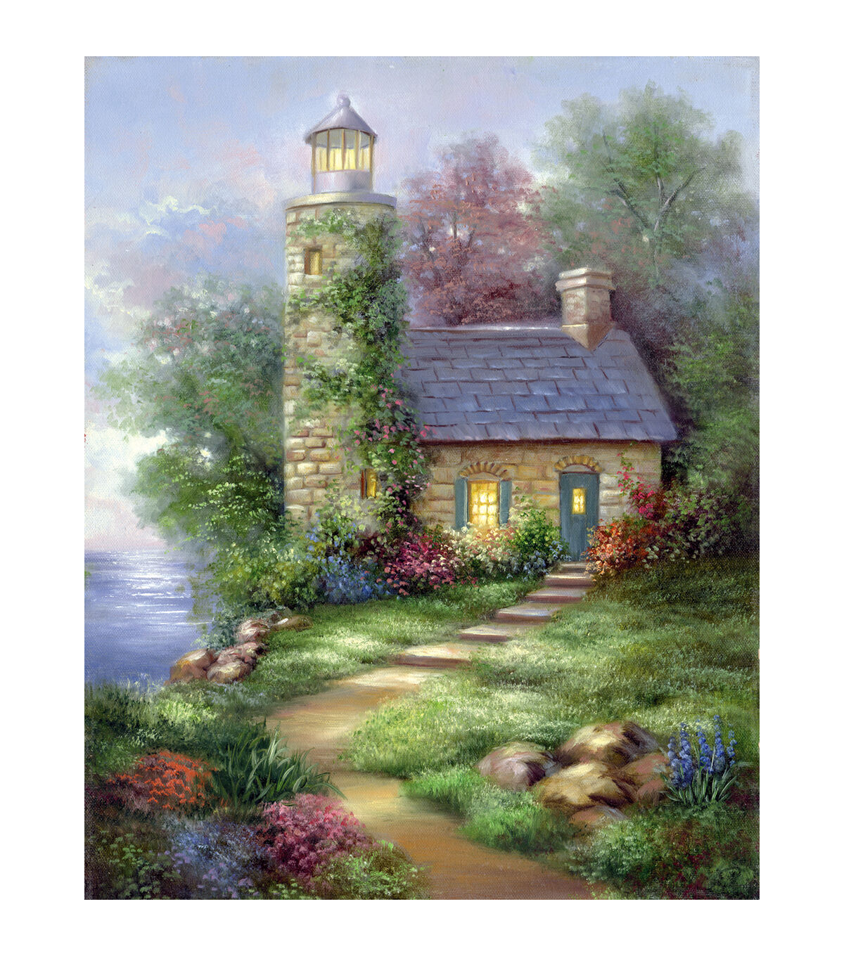 ROYAL BRUSH-Acrylic Masterpieces Painting: Romantic Lighthouse. Painting size: 11Hx14W inches.