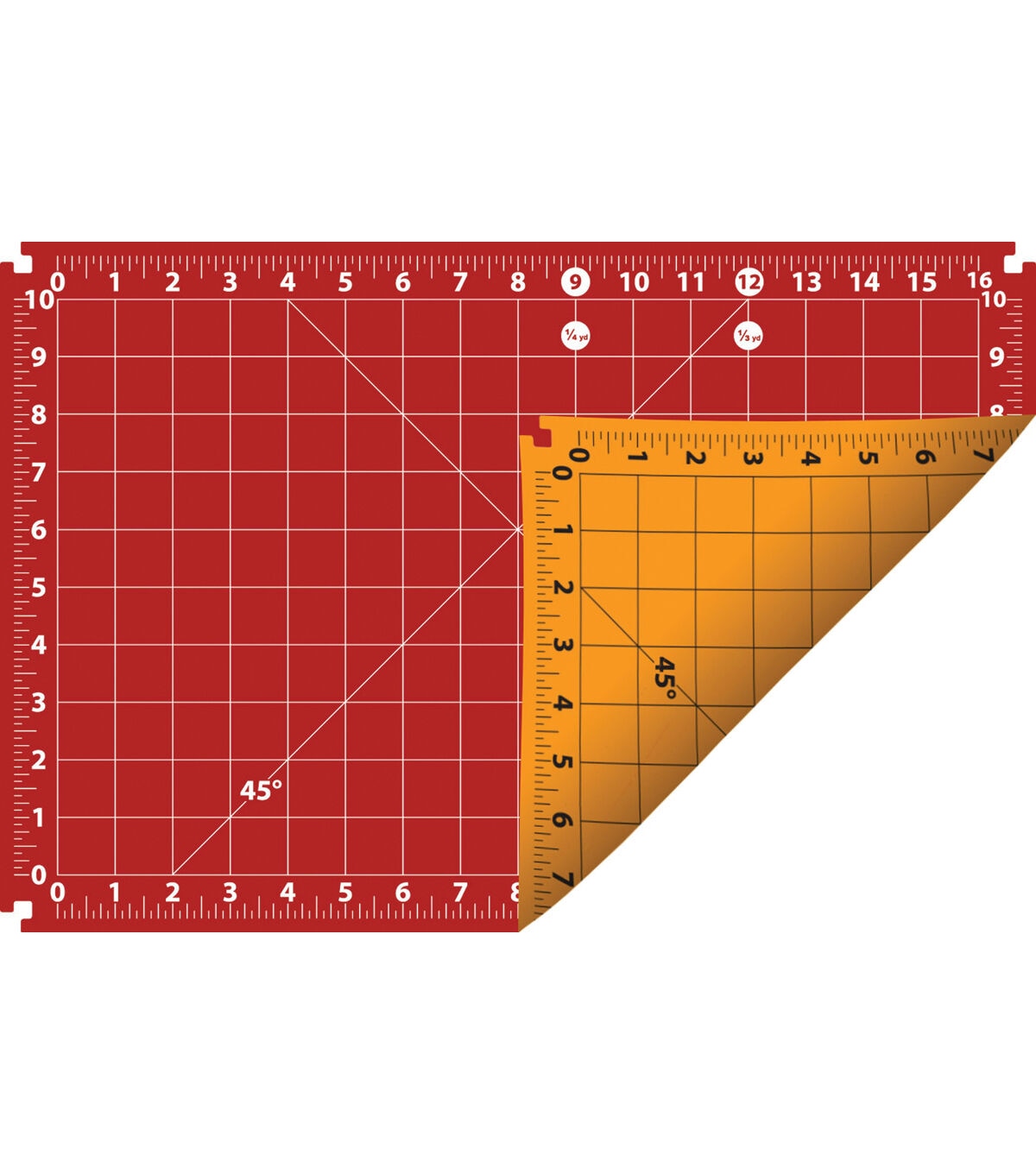 The clever Add-A-Mat system allows you to easily expand your cutting surface by adding additional mats onto the edge. Notches in the corners allow all the mats in the system to be mixed and matched as needed! This package contains one 12x18 inch self-healing cutting mat. It is double-sided with 1-inch gridlines on both sides; 1/8 inch increments on the edge rulers; 45-degree angle lines; and markings identifying 1/4- and 1/3-yard lengths. Additional mat sizes are available (each sold separately). Imported.