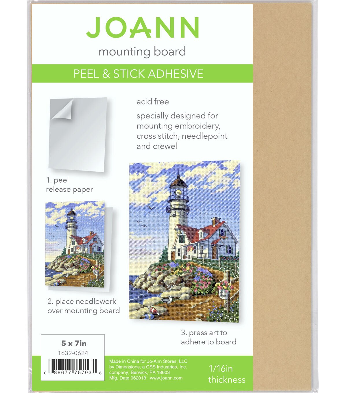 This adhesive mounting board specially designed for mounting emrboidery, cross stitch, needlepoint and creel designs. The 5x7 acid-free board is lightweight yet strong