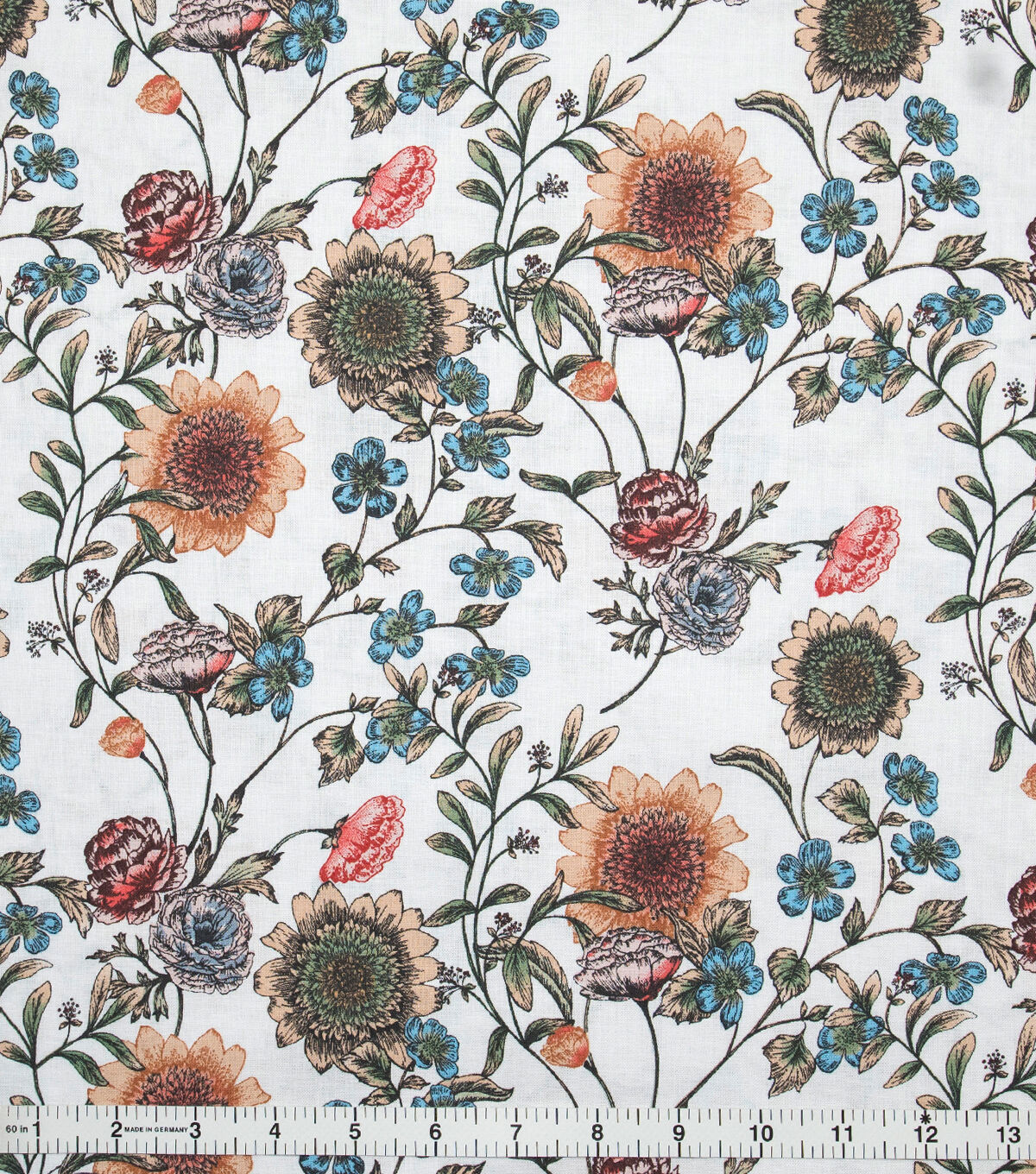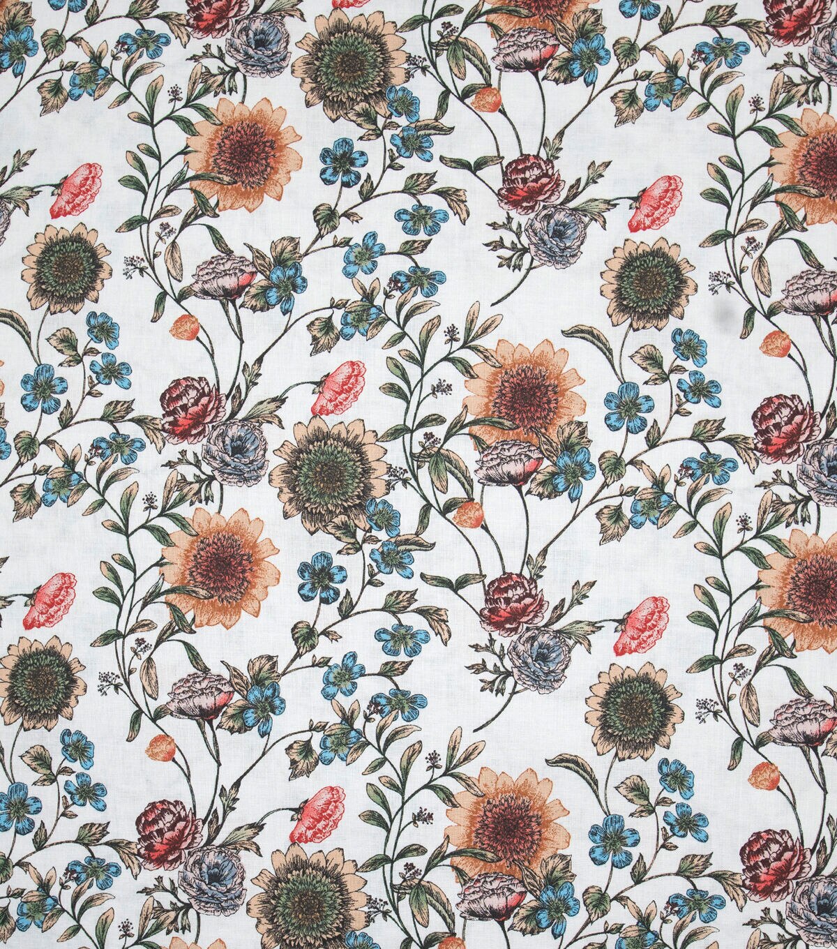 Airy Floral White Organic Premium Cotton Fabric