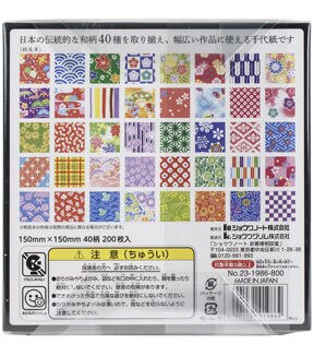 Sure to entice everyone-beginners and experts, children and adults. This package contains 40 different traditional patterns, 5 sheets each for 200 sheets of Chiyogami. Packaged in a solid box. Imported.