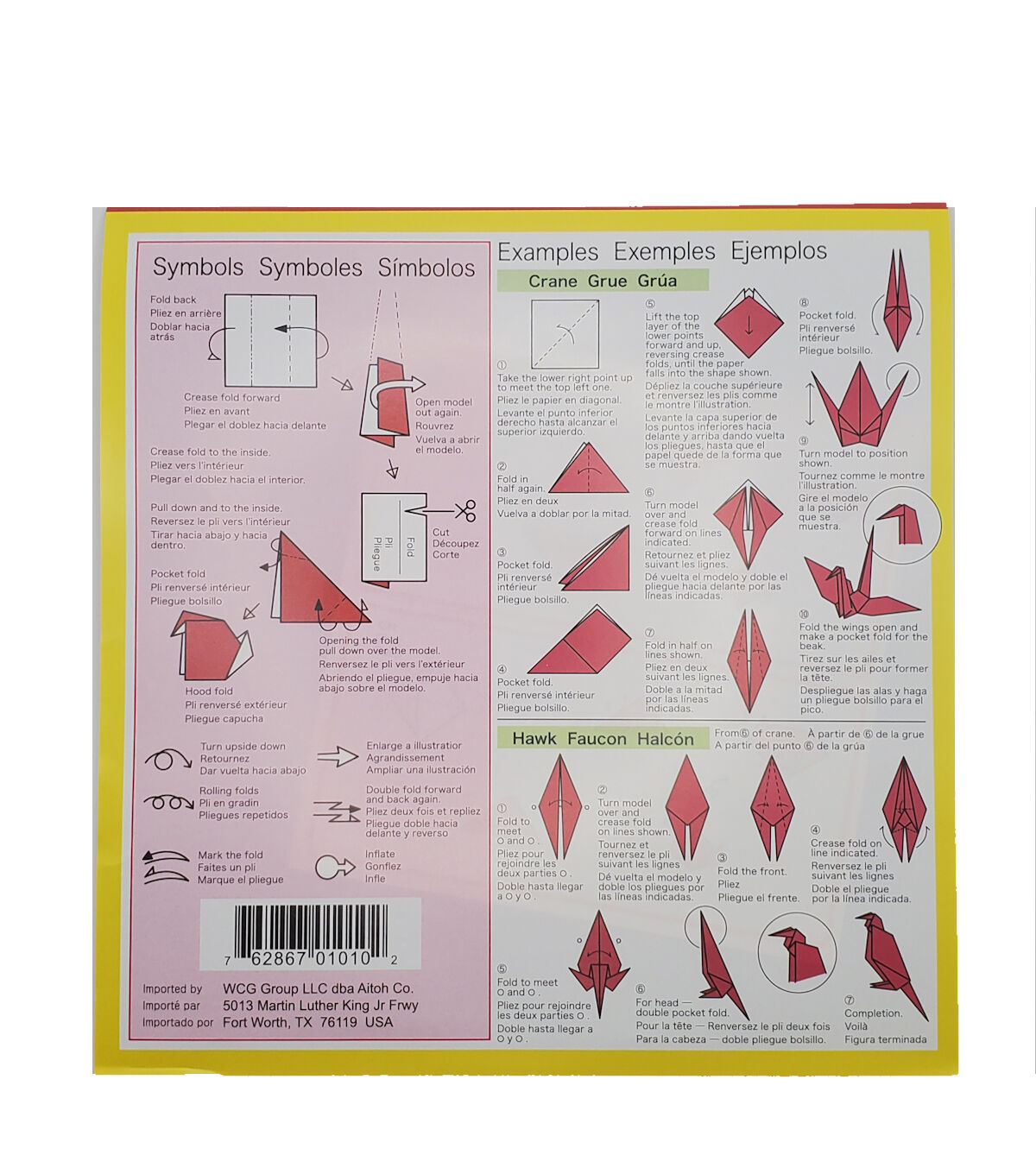 3 unique sizes of single sided origami with 14 colors and 60 sheets. Includes instructions to fold 15 different projects.