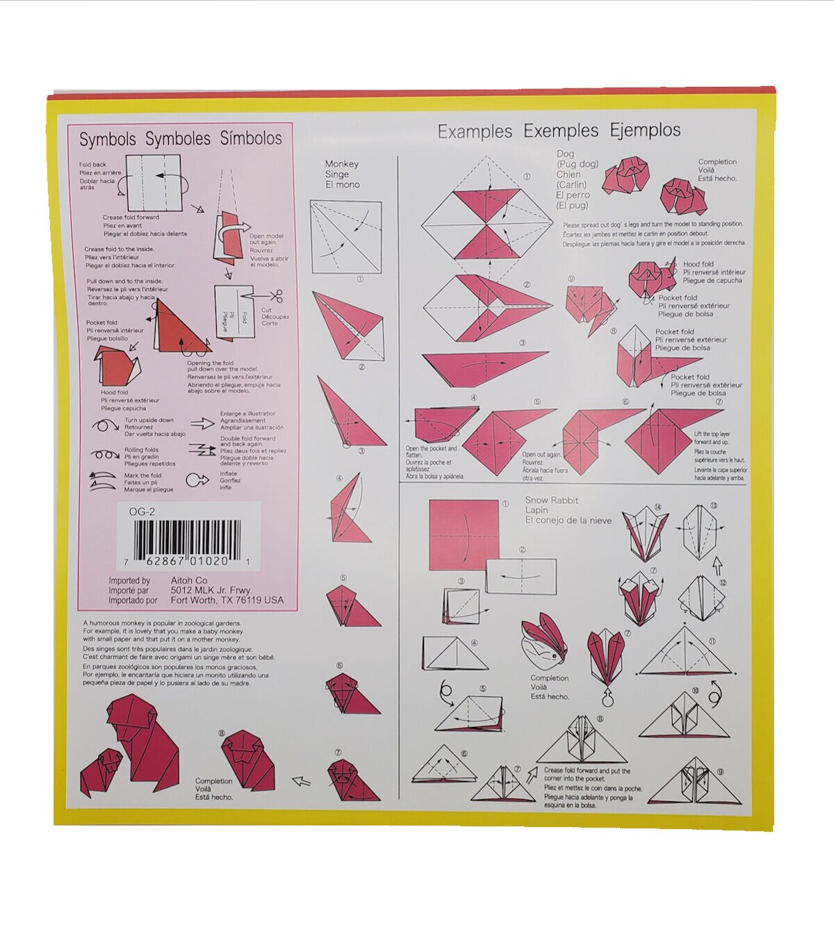 3 unique sizes of single sided origami with 14 colors and 60 sheets. Includes instructions to fold 15 different projects.
