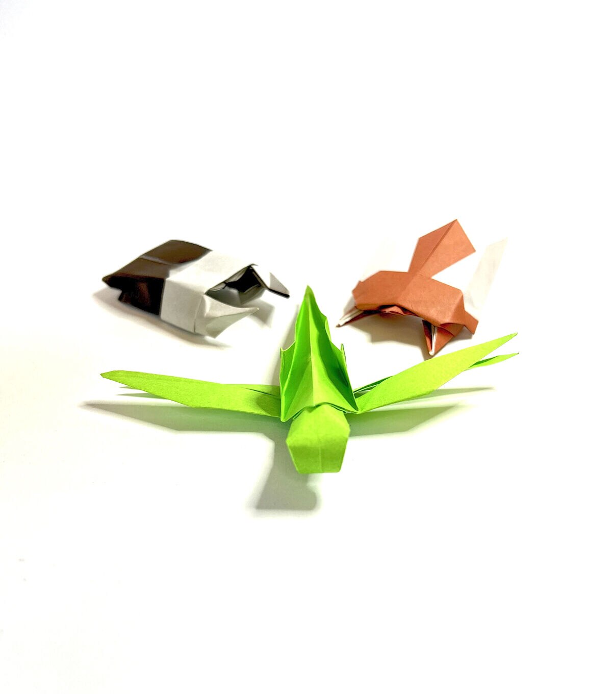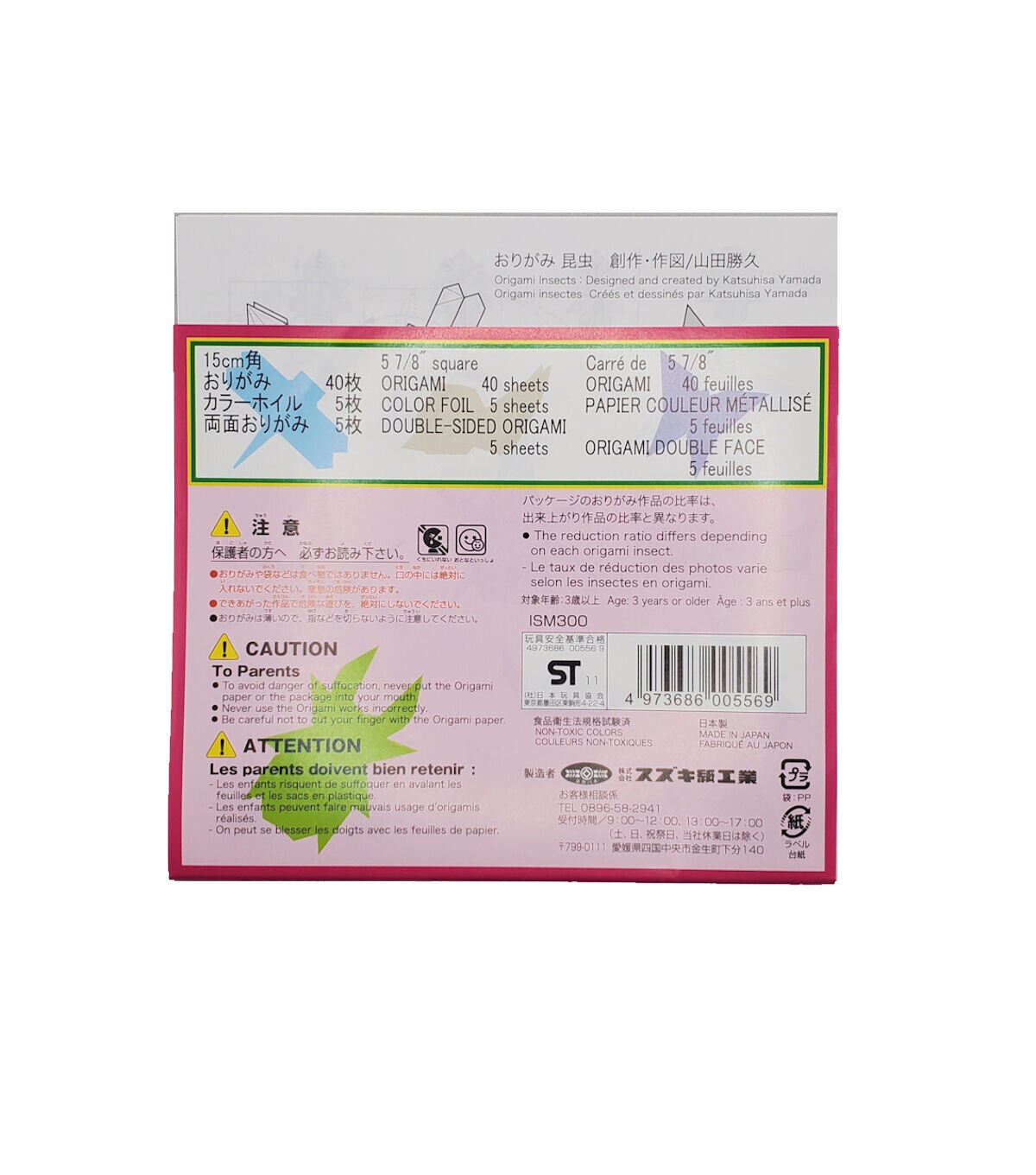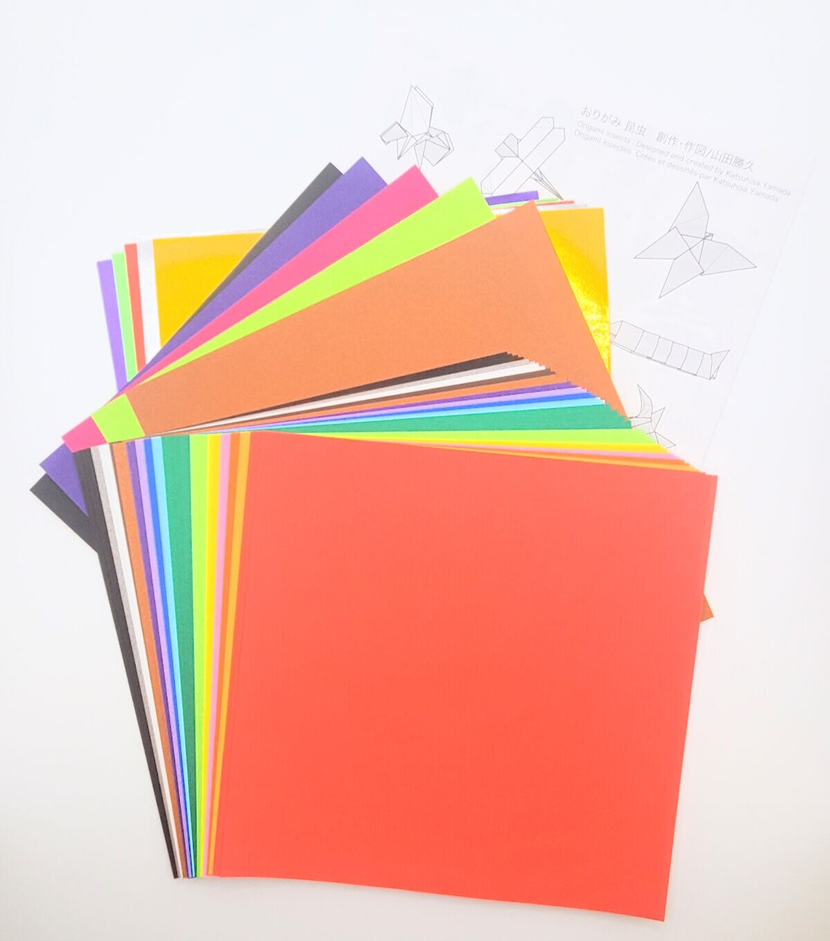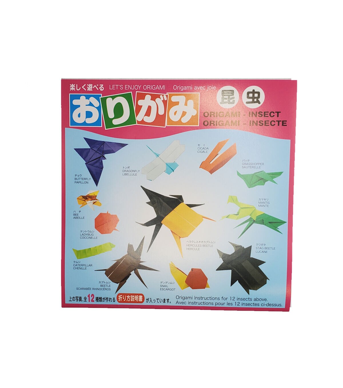 Instructions to make12 different insects. Includes 40 sheets of 5 7/8" Origami. Make a praying mantis, dragonfly, beetle and more.