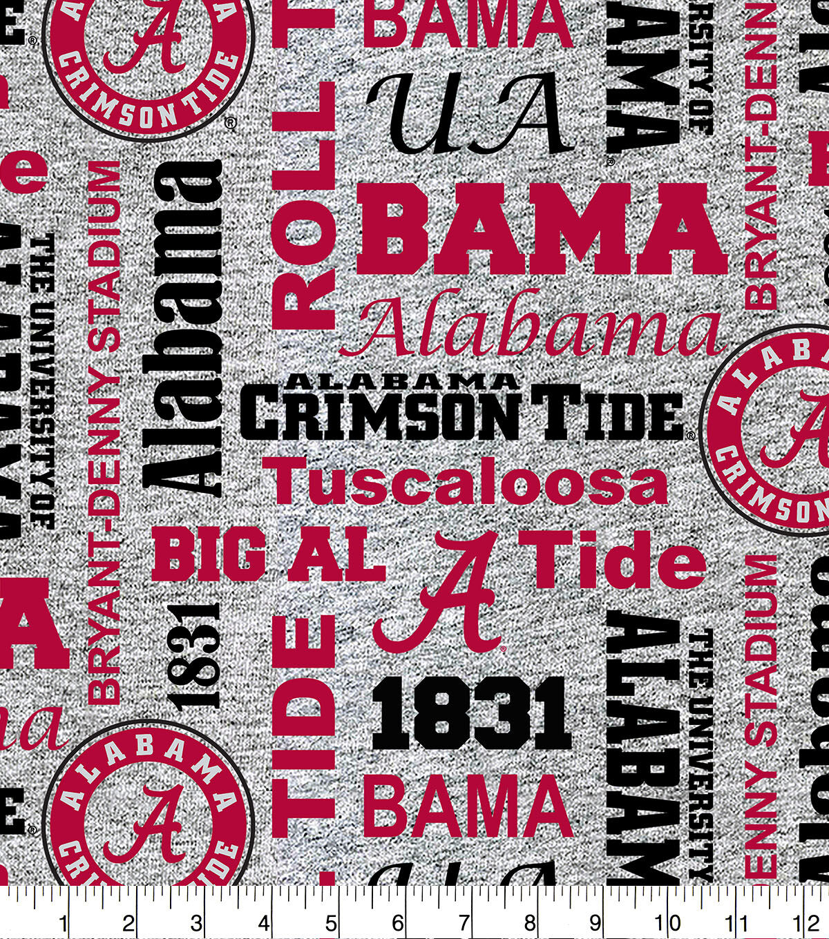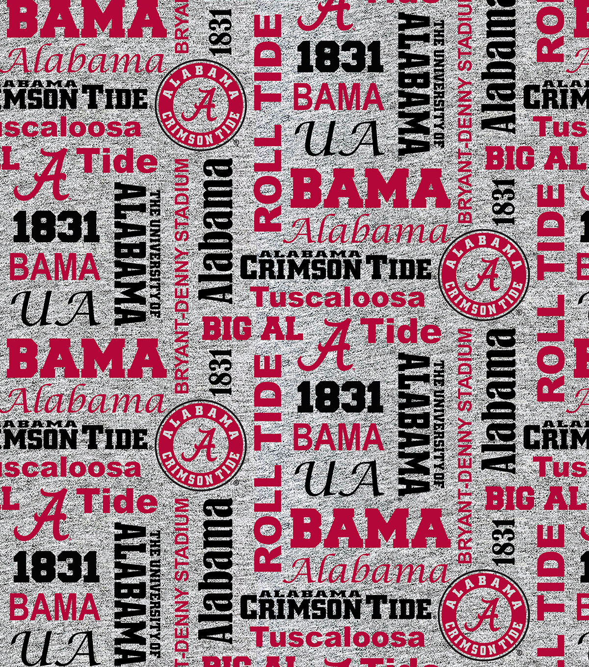 Alabama Crimson Tide Fleece Fabric Verbiage on Heather