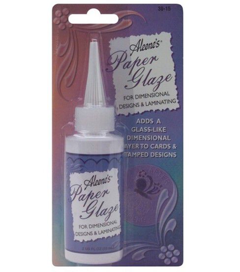 Add a glass-like dimensional layer to paper crafts with the Aleene's Paper Glaze. Use it as is, or tint it with acrylic paint to accentuate design details. It does not run colors, and can be accented with a variety of embellishments, including microbeads, glitter and trims. Apply this paper glaze with a convenient needle-nose tip for precise and small designs, or use a brush for larger designs.