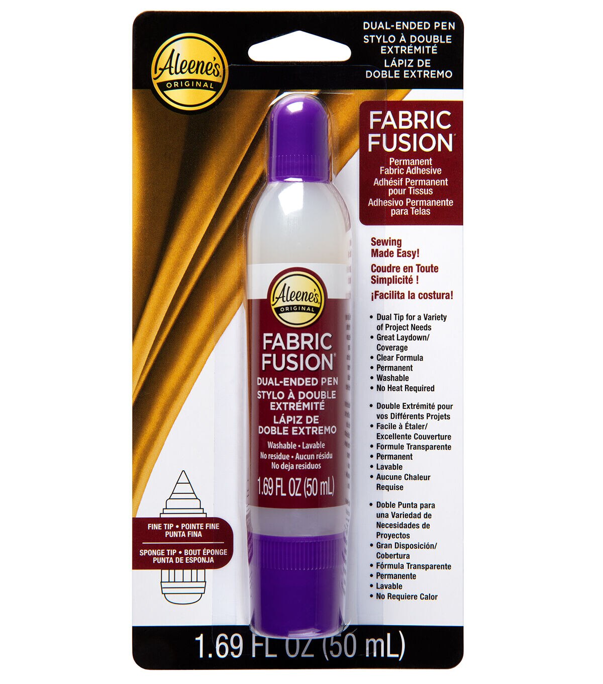 The Aleene’s Fabric Fusion Dual-Ended Pen is the perfect no-sew solution for your fabric crafting needs! Equipped with a unique 2-way applicator design, this glue pen allows you to dispense and control the amount of glue applied – exactly the way you need it. Use the precision tip for detailed projects and the sponge tip for covering larger craft surfaces with an even layer of Fabric Fusion. Dries clear, flexible and washable. A great addition to for your craft room!