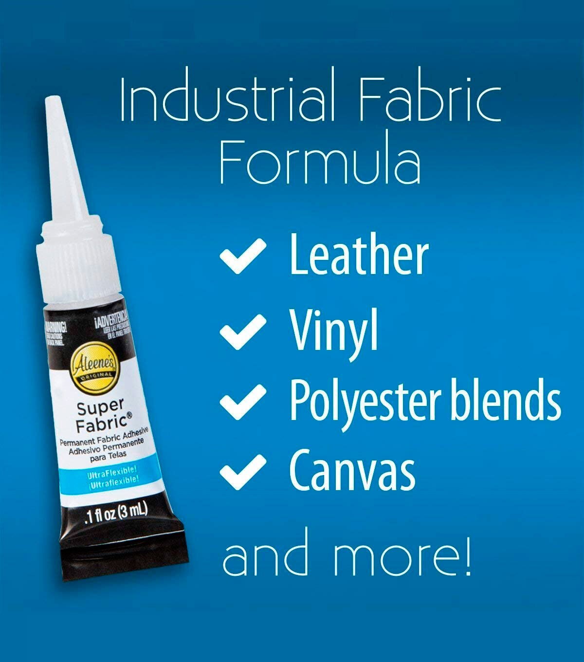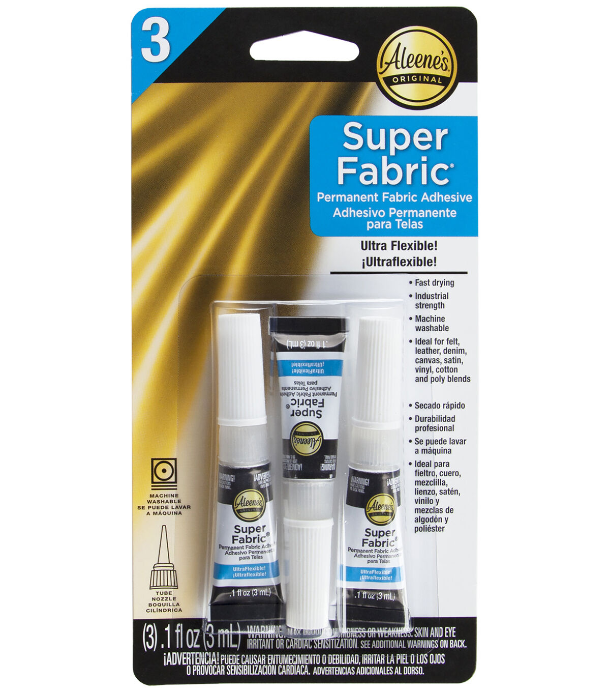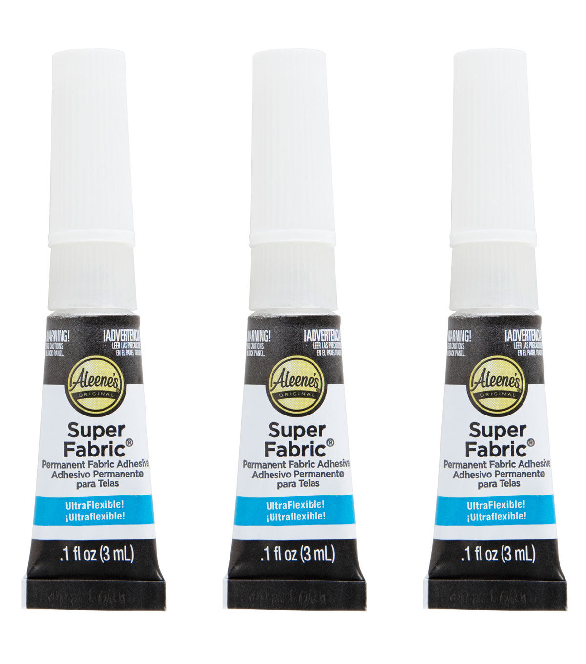 Your fabric projects have a new best friend! Aleene's Super Fabric Adhesive is an industrial-strength glue that works super fast! Permanently glue fabrics and heavy duty, hard-to-hold embellishments with a clear, flexible bond that that dries quickly and is even machine washable to keep up with your busy schedule. Pack includes three 0.1 fl. oz. tubes of Super Fabric Adhesive that are perfect for carrying in your bag, keeping in your desk drawer or for on-the-go glue needs!
