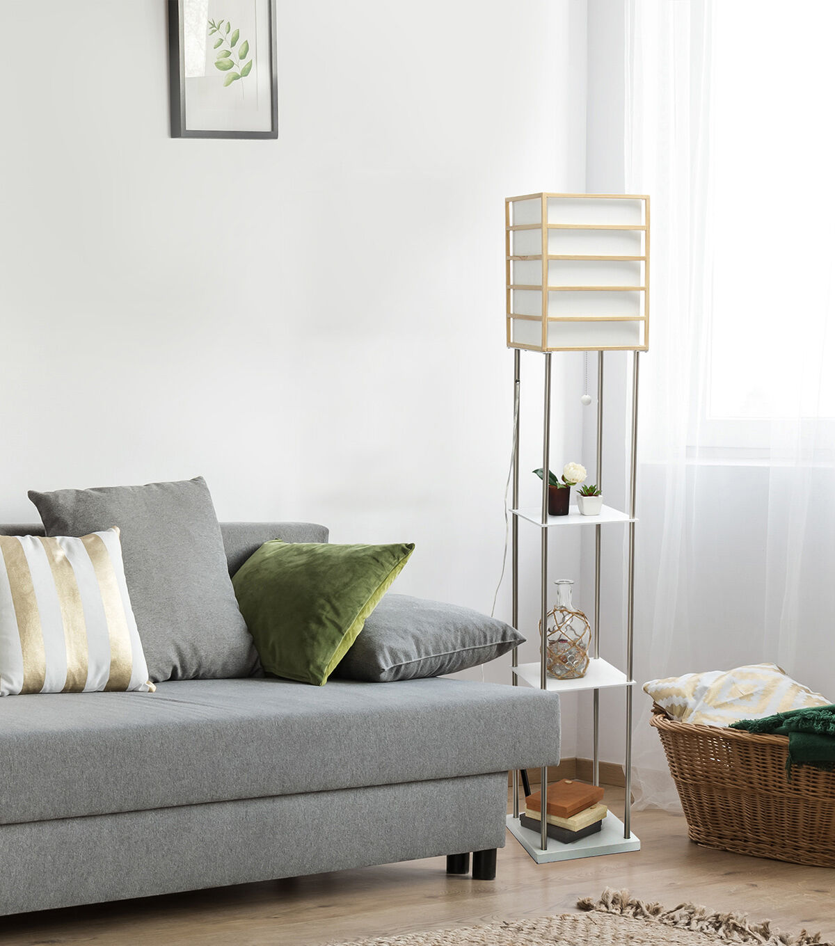 - Floor lamp with 3 shelves for storage/display