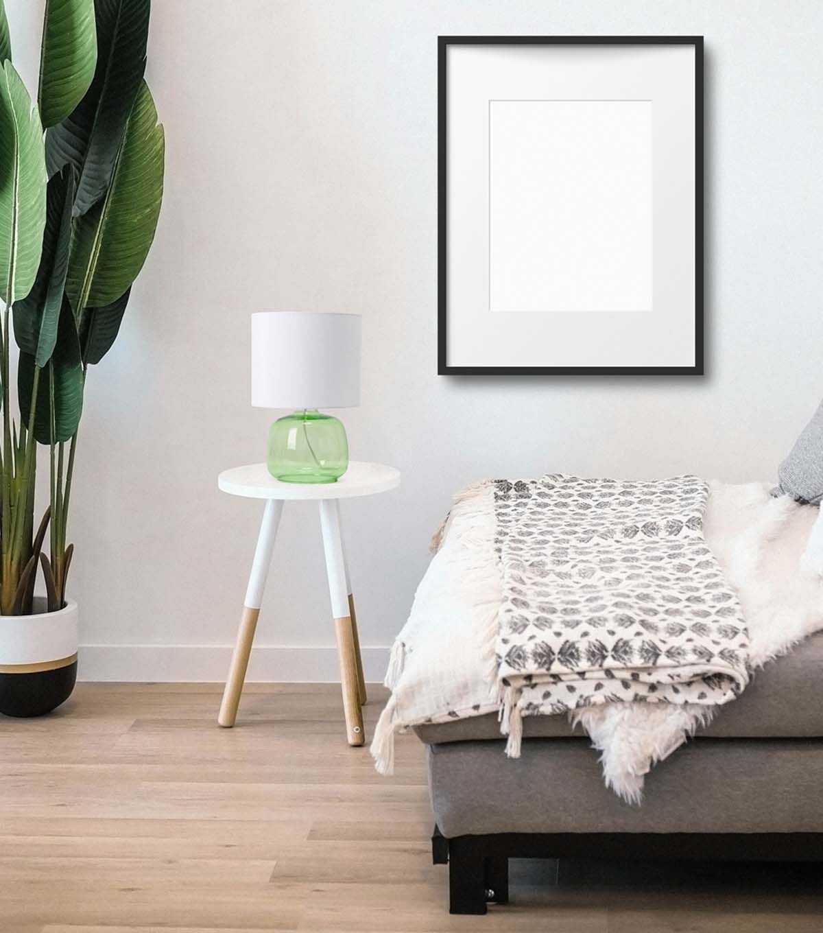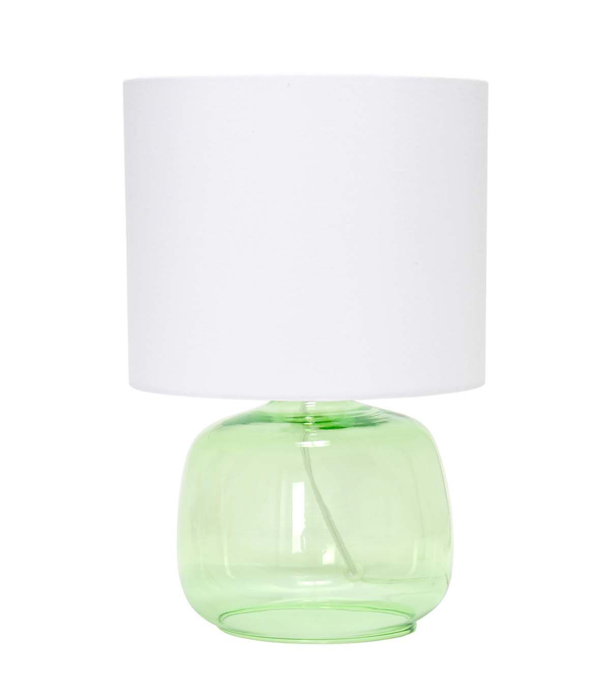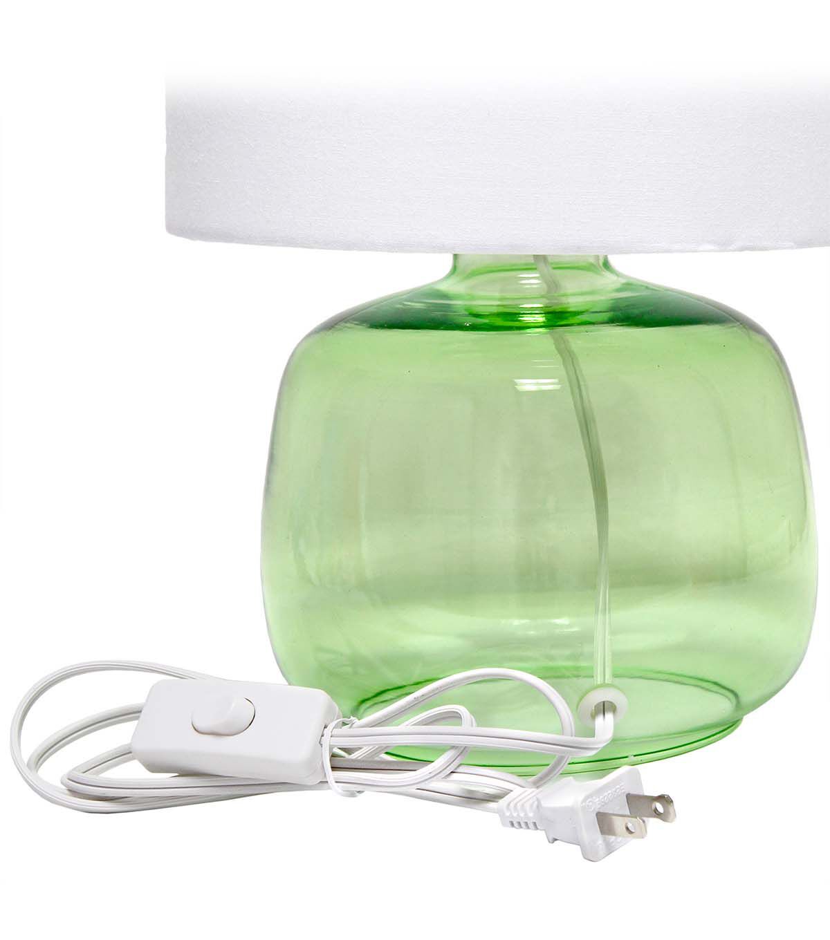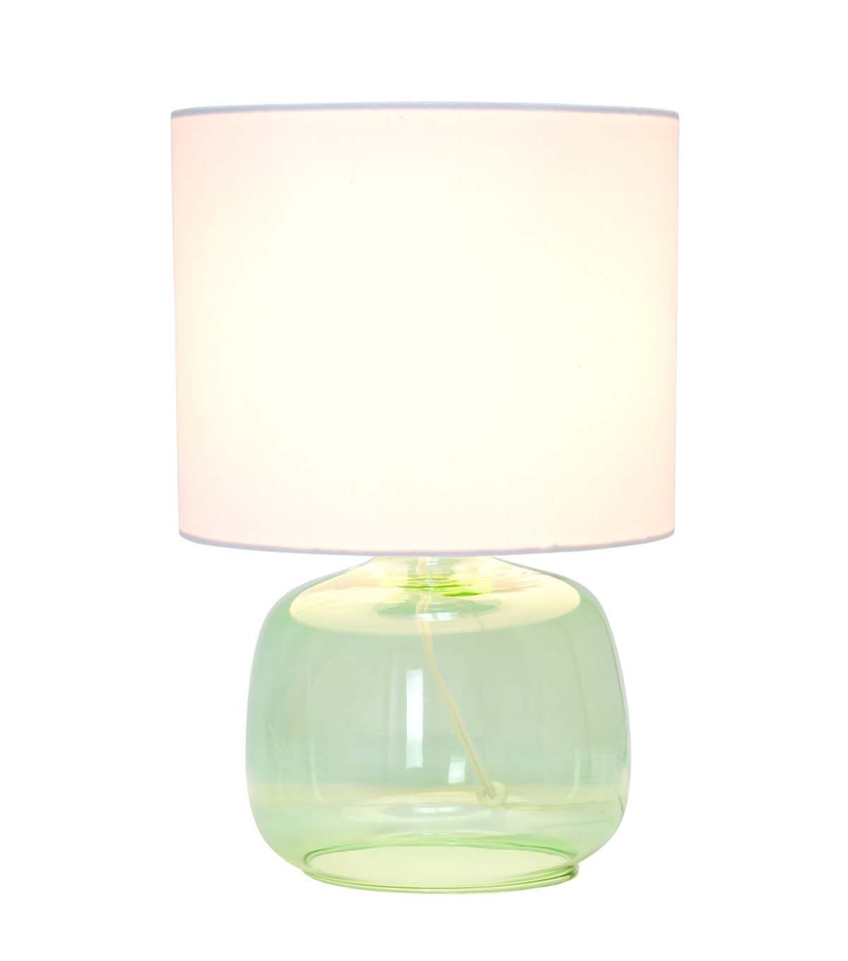 Simple Designs Glass Table Lamp with Fabric Shade, Green with White Shade