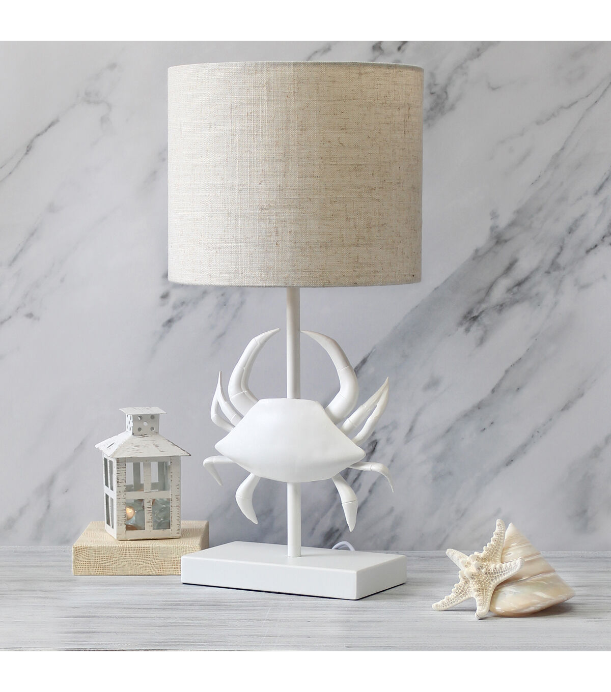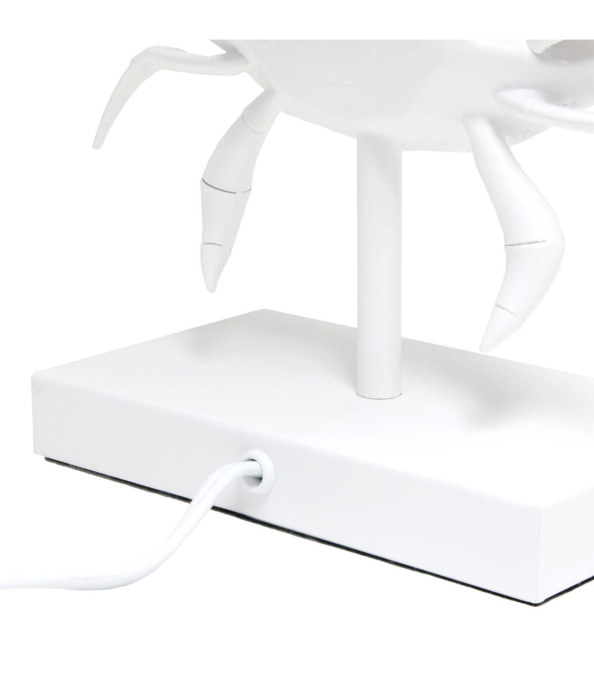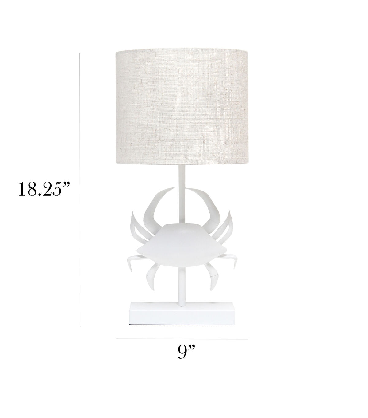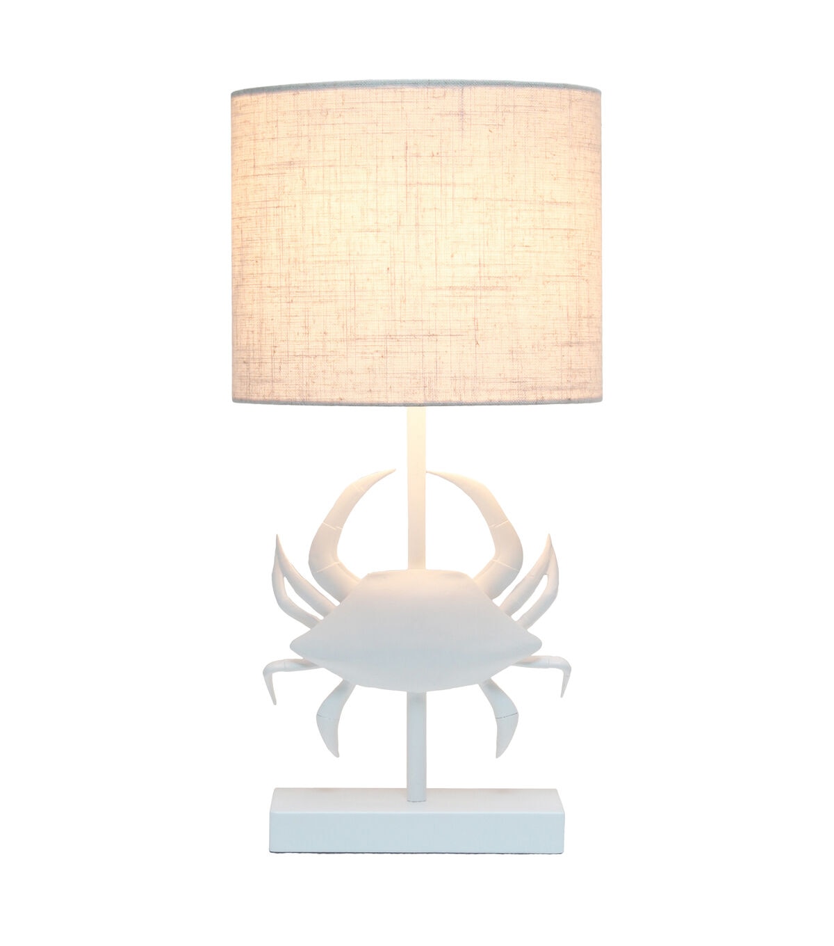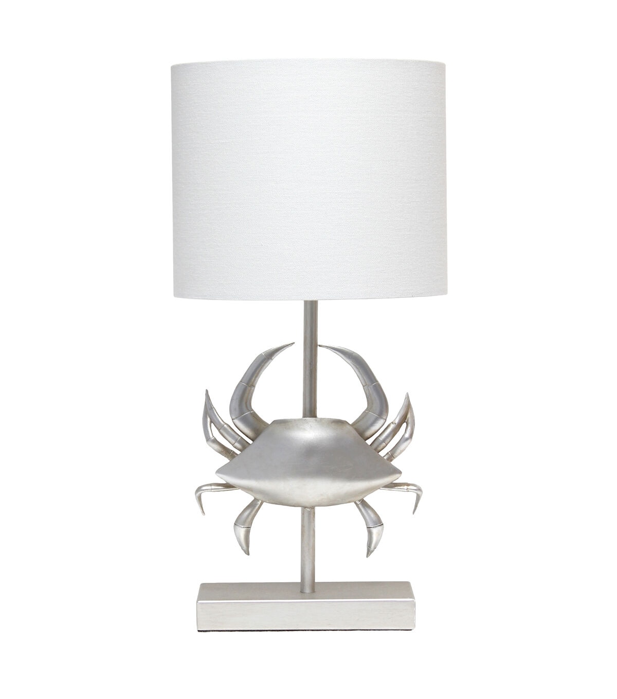 - UNIQUE STYLE LAMP: Fun, stylish, and unique! A pinching crab shape is the centerpiece to this table lamp, and sits on a pole extending down to a rectangular matching base. All perfectly paired with a crisp white fabric drum shade.