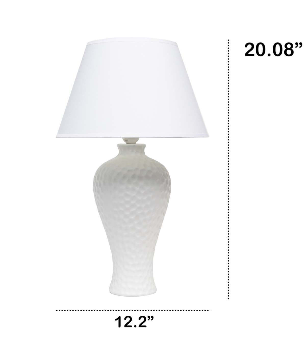 Creekwood Home Essentix 20.08" Traditional Ceramic Textured Imprint Winding Table Desk Lamp with Matching Empire Fabric Shade for Home Décor, Bedroom, Living Room, Dining Room, Foyer