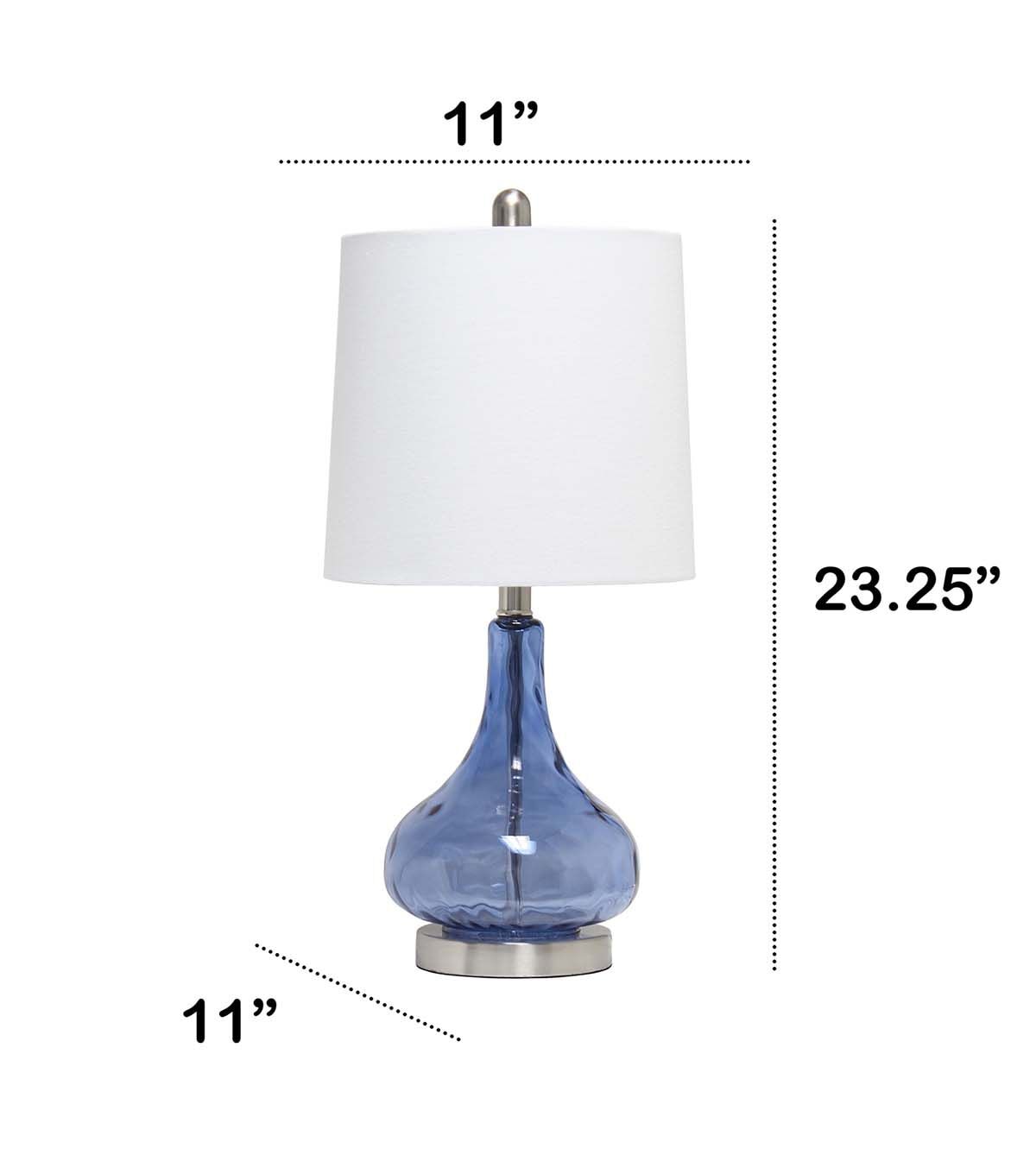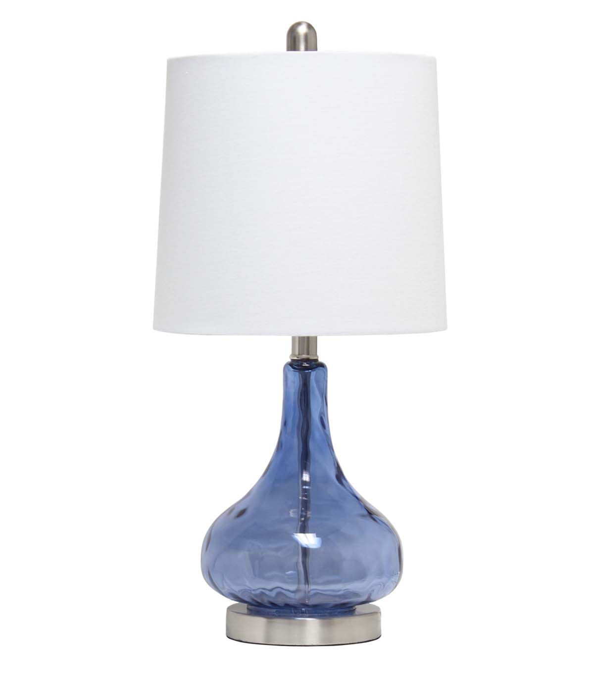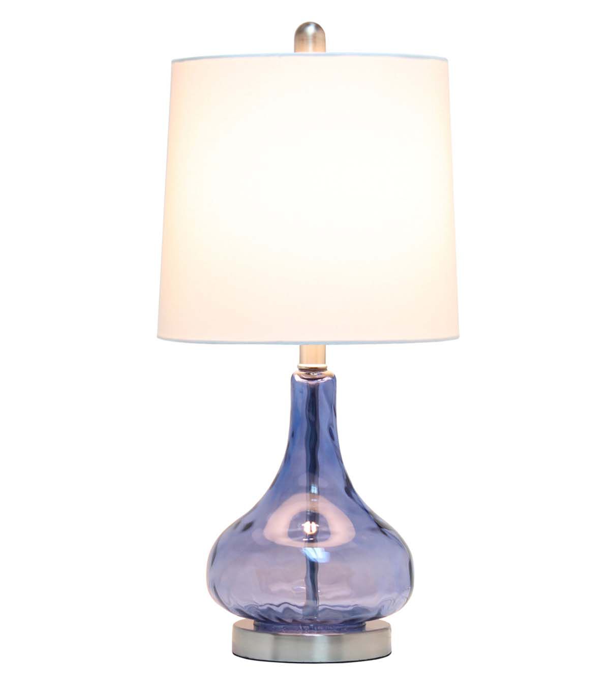 Add some charm to your room as you light up this stylish glass table lamp. The rippling texture across the transparent colored glass base balances perfectly beneath a tapered fabric shade. Soft and delicate for a nursery, yet sophisticated enough to flourish in your living room, bedroom, or foyer!