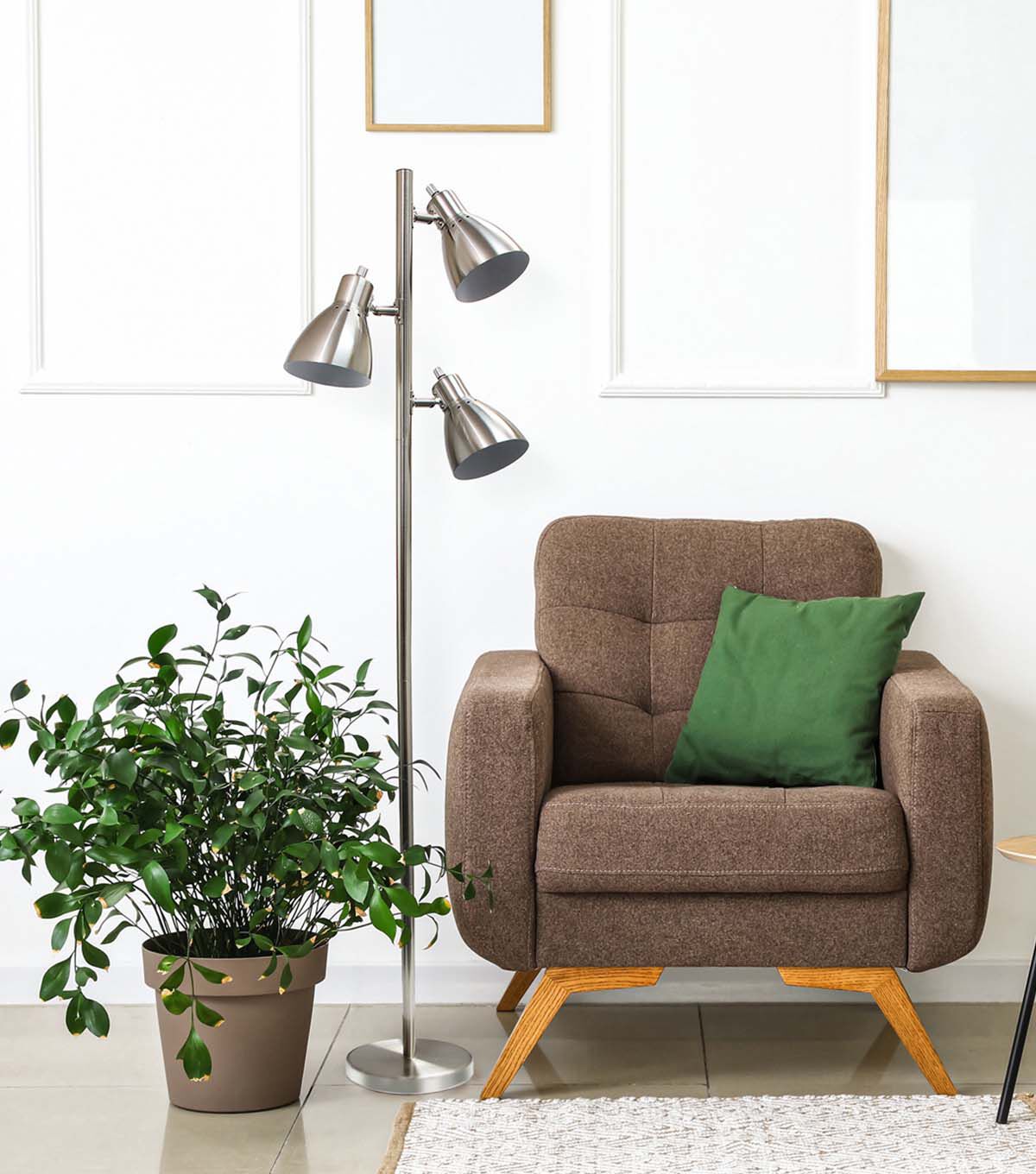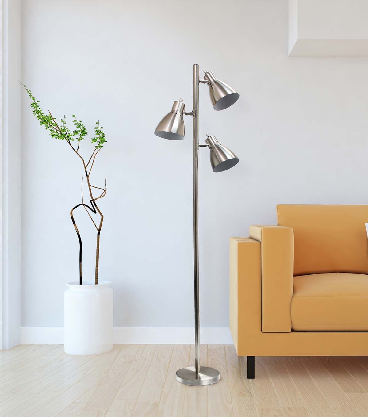 This is your classic 3 light metal tree floor lamp, created to adapt to both office and home environments while adding a bit of style to your décor. Three spotlights face opposing directions, designed to provide ample lighting to your environment all while taking up a small amount of space. Perfect to sit in your living room, study, dorm room, office or bedroom!