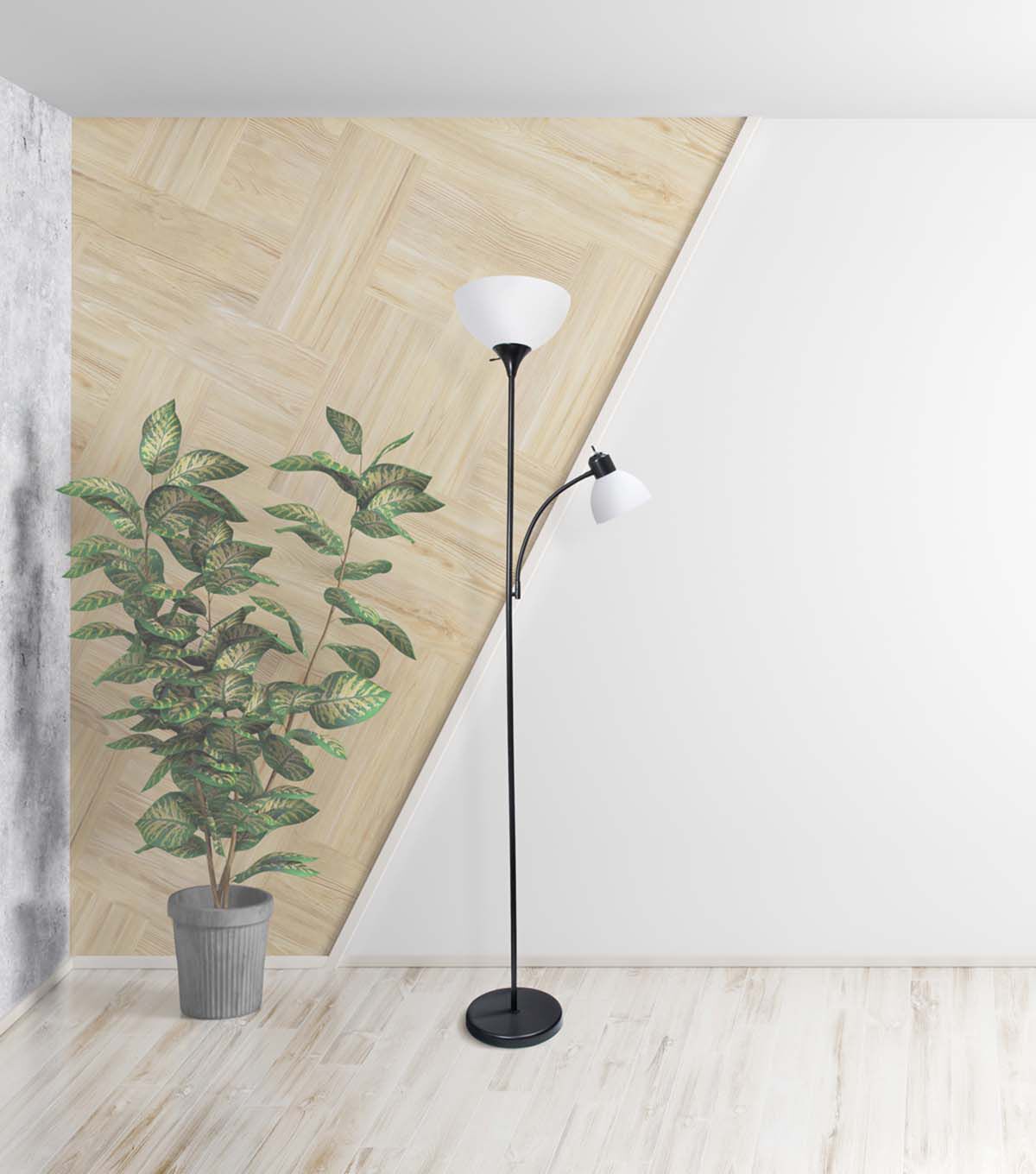 Creekwood Home Essentix 71.5" Tall Traditional 2 Light Mother Daughter Metal Floor Lamp with Torchiere and Reading Light Plastic Shades for Home Décor, Study, Living Room, Office, Dorm, Bedroom, Entryway, Hallway