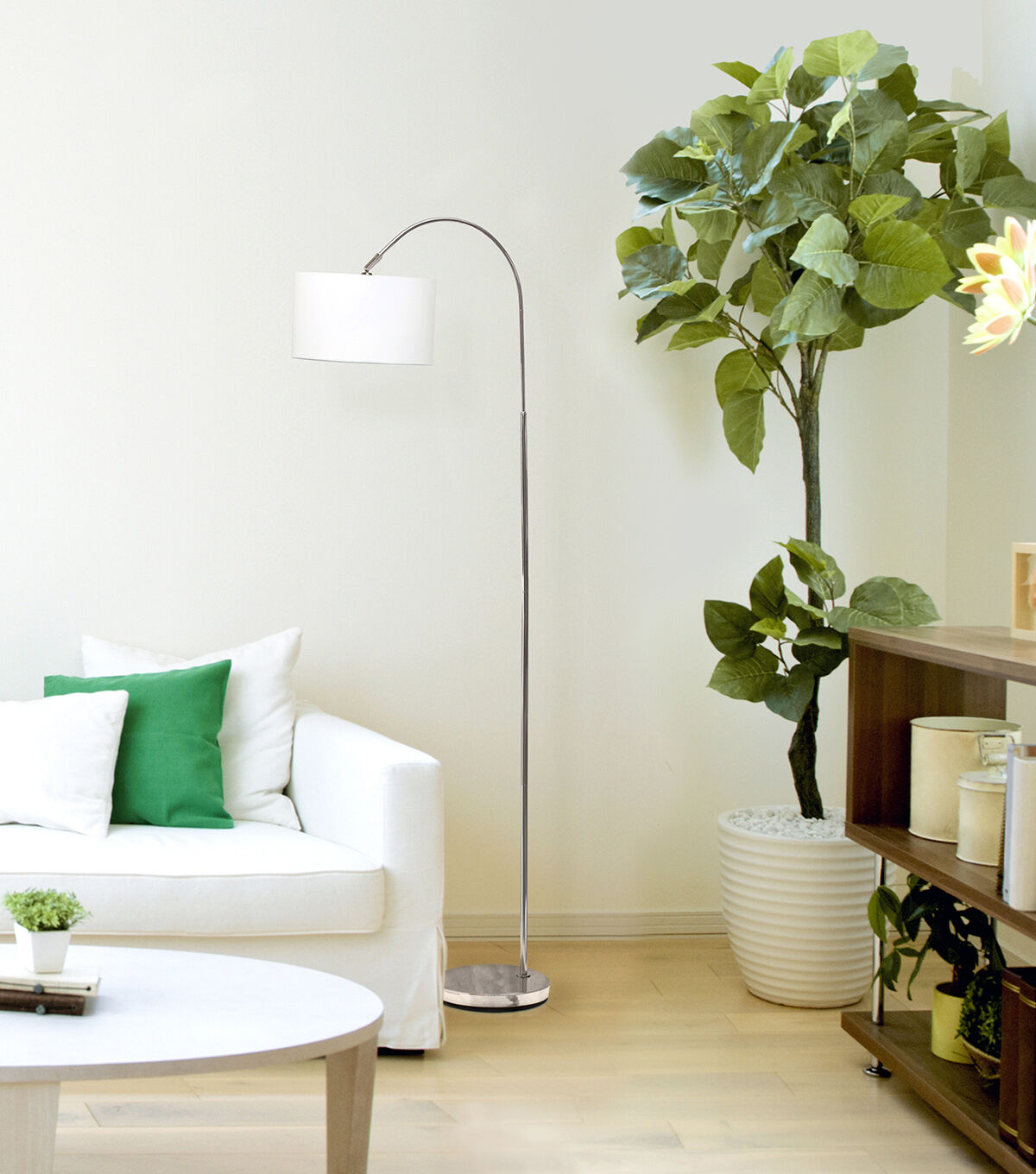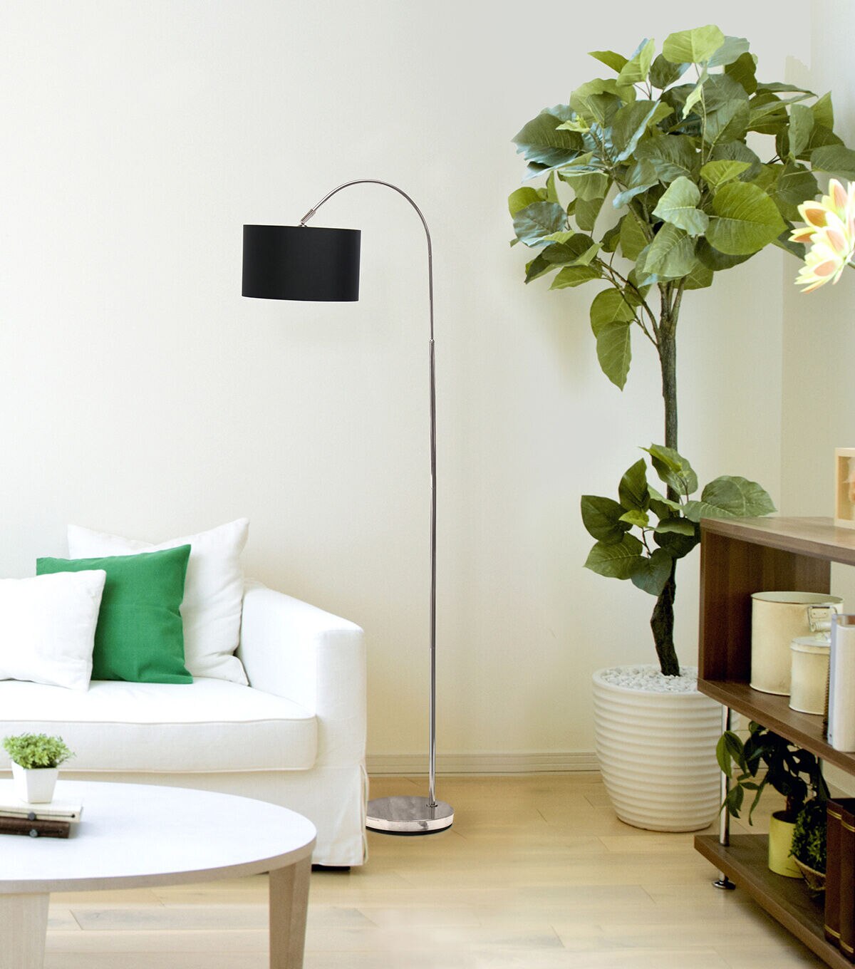 Upgrade your basic floor lamp with this simple but fun arched floor lamp! This item has a fresh look with a brushed nickel finish throughout and a clean black fabric shade. It's the perfect addition to modern or traditional styled rooms!