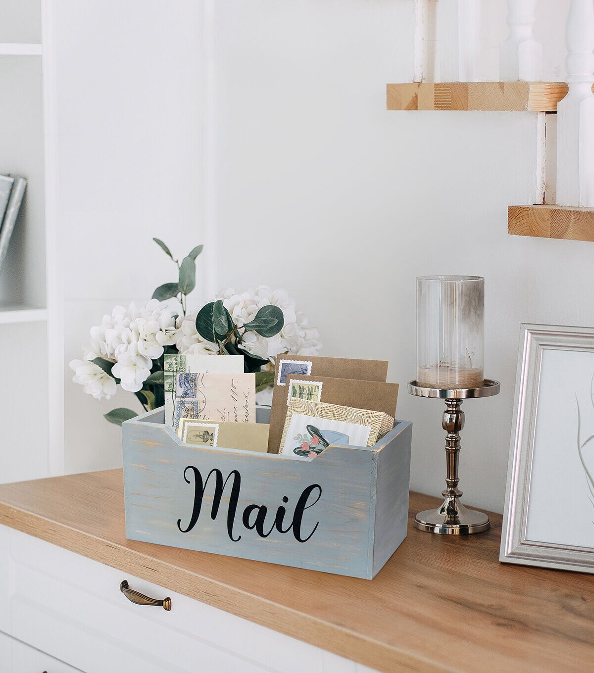 This rustic farmhouse mail box is the perfect organizer for mail, bills, coupons and other small important items. Add a touch of rustic farmhouse style to your home decor while keeping your desk or counter tidy! Perfect for your foyer, office, kitchen or mudroom.