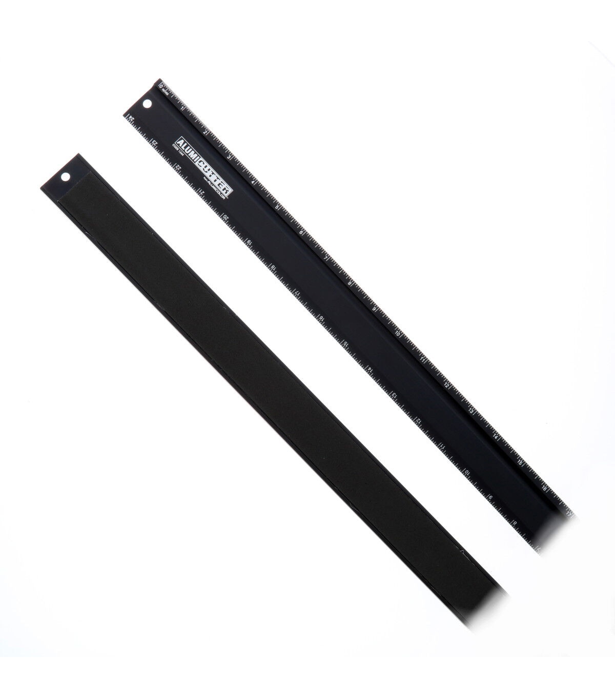 The Steel Edge AlumiCutter has an imbedded steel cutting edge designed for safe, heavy-duty cutting with a razor knife or rotary blade. Made from quality aluminum for ultra smooth edges and a solid feel without flexibility, this steel edge features a black anodized finish has a satin like feel. The photo-anodized calibrations are permanent and will not clean or rub off.