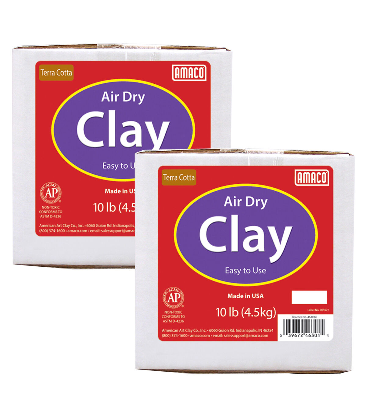 Gray Air Dry Clay is an all-purpose air dry clay to use for sculpting, hand modeling, or throwing on a potter's wheel. Once pieces are finished, air dry evenly and slowly on all sides. Pieces will dry hard, but must be handled carefully to avoid breakage. Pieces can be decorated with paint, and sealed with shellac for added strength and to waterproof. This clay can also be fired to cone 04 for hardness/permanence and to glaze. Each box includes 10 lbs. of clay. Sold as 2 boxes for a total of 20 lbs.