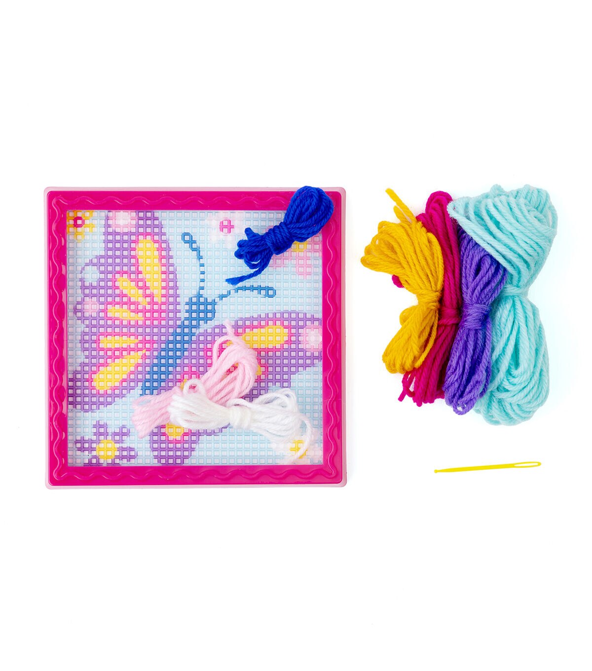 Learn a new skill while making beautiful art! This kit has everything you need to make an adorable needle point project. Learn needle point work, then display your piece with pride. Perfect for parties, rainy days, and just because. This package includes: 1 piece printed mesh, 1 plastic frame, 26 yards yarn, 1 plastic safety needle, and instructions. For ages 6+