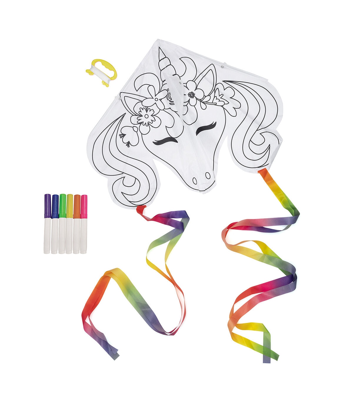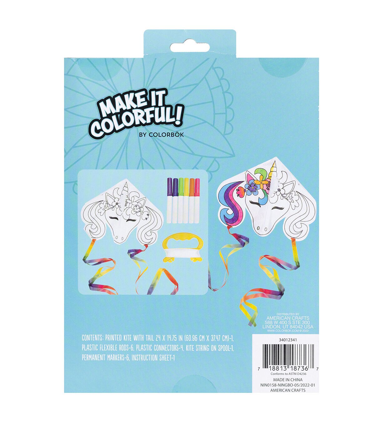 Kids crafting kits are the perfect project for any day! Use them for parties, rainy days, and just for fun. Kits come in a variety of mediums and skill to choose from, so try them all and get creative! For ages 6 and up. This package includes: 1 printed kite with tail, 5 plastic flexible rods, 4 plastic connectors, 1 spool kite string, 6 permanent markers, and instructions. Color it then watch it fly!