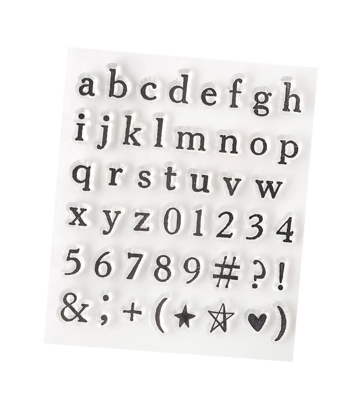 - INCLUDES: 48 acrylic stamps in a variety of letters, numbers, punctuation marks, and symbols