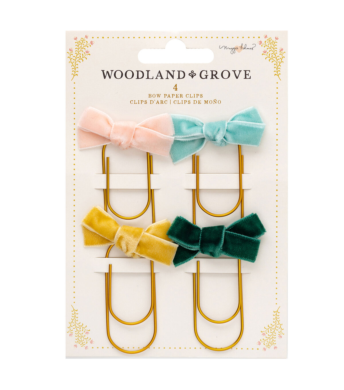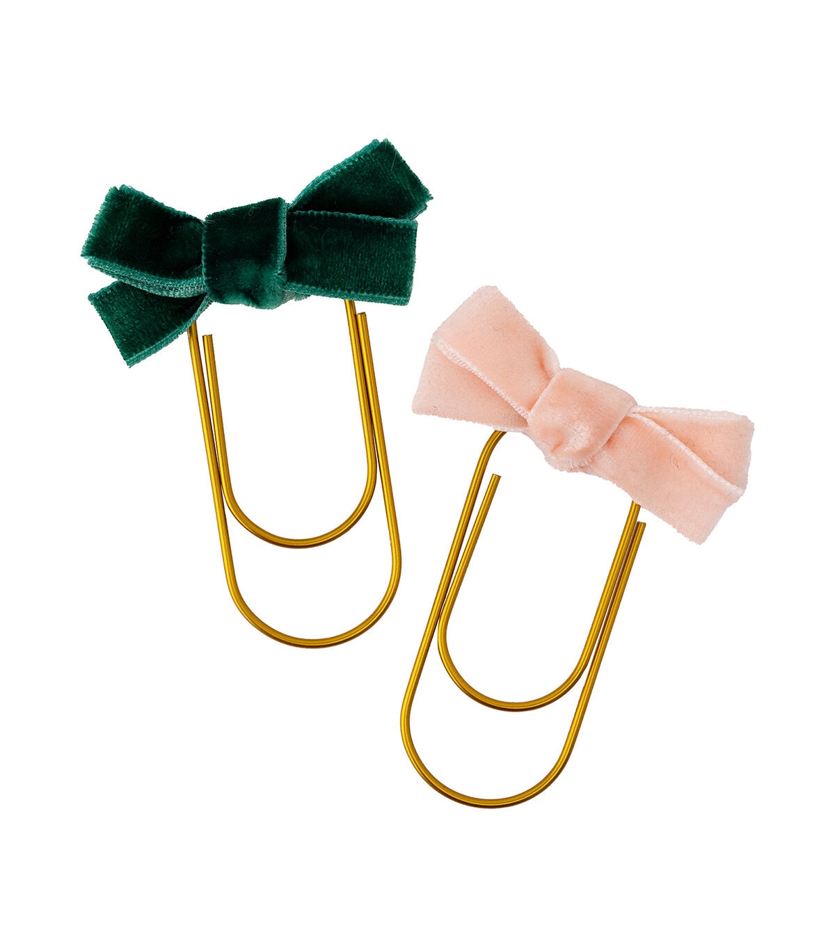 You can't get any cuter than these charming bow paperclips. They're fun and functional! Use them to keep your place in planners and journals, or to keep photos and notes in place. They're also great for embellishments paper crafts and even gifts. This package includes 4 gold paperclips with velvet bows.