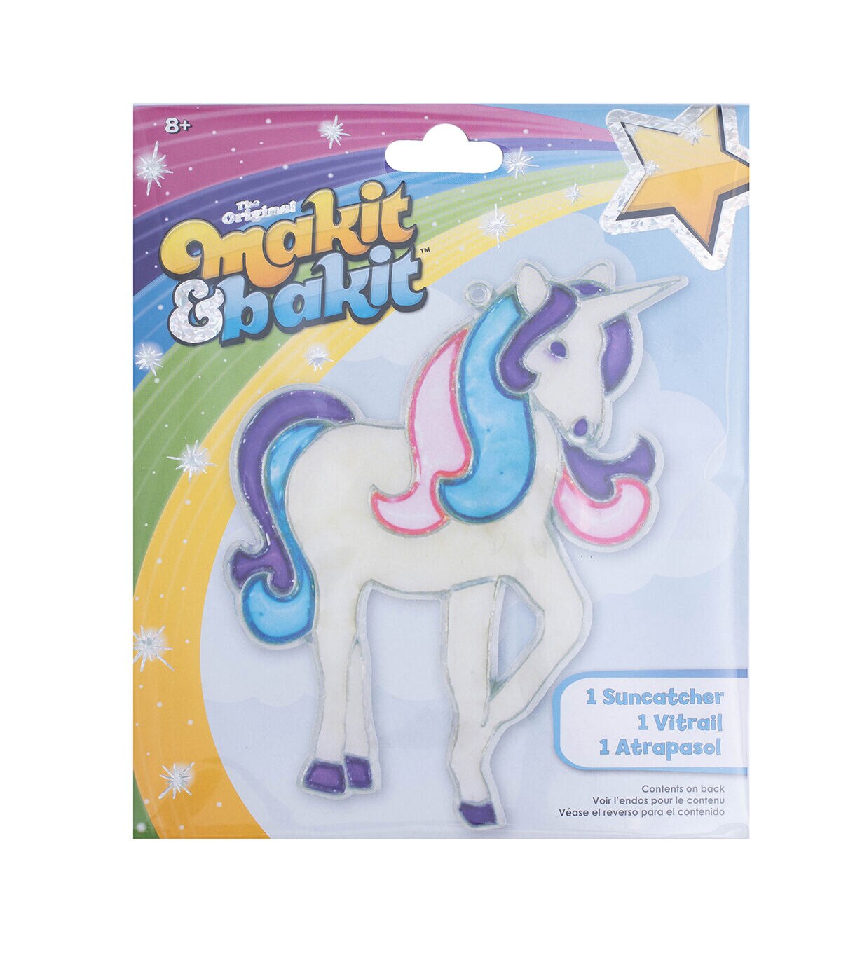 Create a lovely suncatcher with beautiful stained glass effects using the Colorbok Makit & Bakit Suncatcher Kit-Glitter Unicorn. This pack contains everything you need to make a stunning unicorn suncatcher including a metal frame, 0.74 oz of baking crystals and a suction cup. It also comes with easy-to-follow instructions to help kids aged 8 years and above complete the project with ease. Available in a variety of exciting designs, sold individually. Conforms to ASTM D 4236.