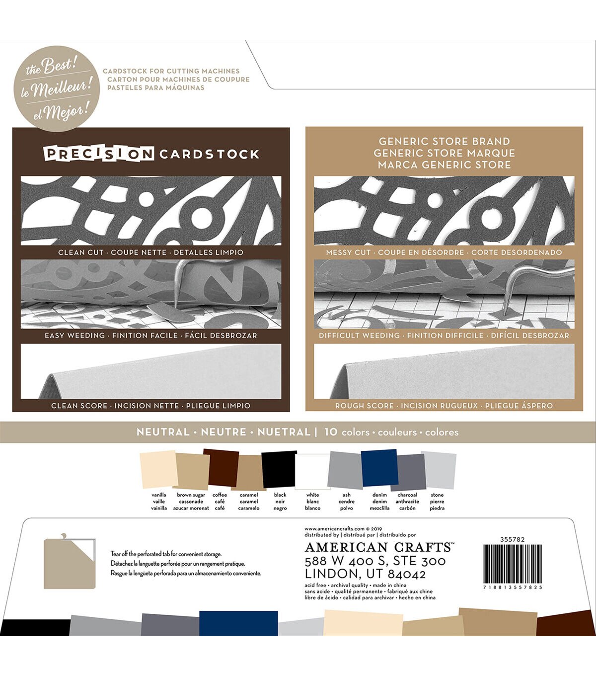 This cardstock is textured, solid core and 80lb (216gsm). Perfect for all cutting machines (sold separately). This package contains 60 12x12 inch sheets of cardstock in 15 colors (four of each color). Acid free. Archival quality. Imported.