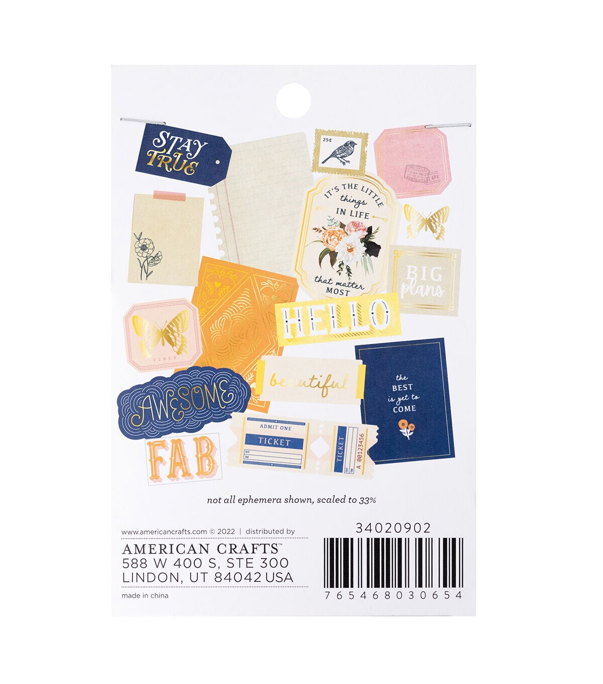Ephemera pieces are a quick and easy way to add something special to all your projects. Use them for planners, scrapbooks, journals, handmade cards, and so much more. This pAmerican Crafts kage includes 83 ephemera pieces in a variety of designs and sizes.