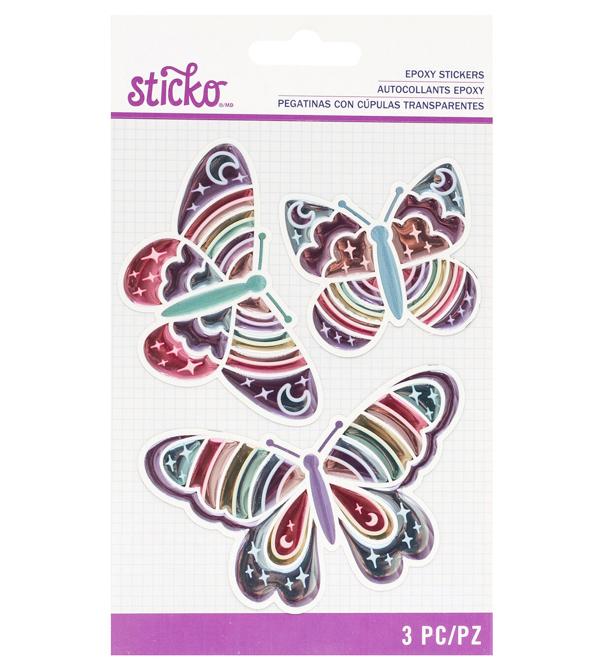 Add just the right amount of dimension and color to your projects with epoxy stickers by Sticko! Use epoxy stickers to put the finishing touches onto scrapbook pages, handmade cards, journals, planners, home decor and so much more. Mix and match to fit your personal style! Package includes 3 rainbow butterfly epoxy stickers.