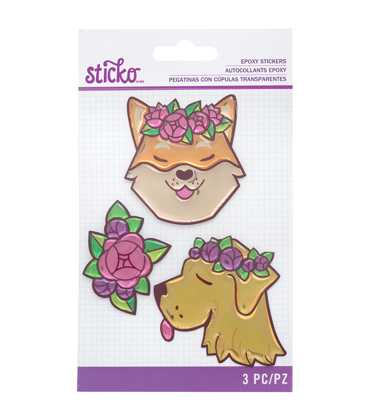 Add just the right amount of dimension and color to your projects with epoxy stickers by Sticko! Use epoxy stickers to put the finishing touches onto scrapbook pages, handmade cards, journals, planners, home decor and so much more. Mix and match to fit your personal style! Package includes 3 dog epoxy stickers.