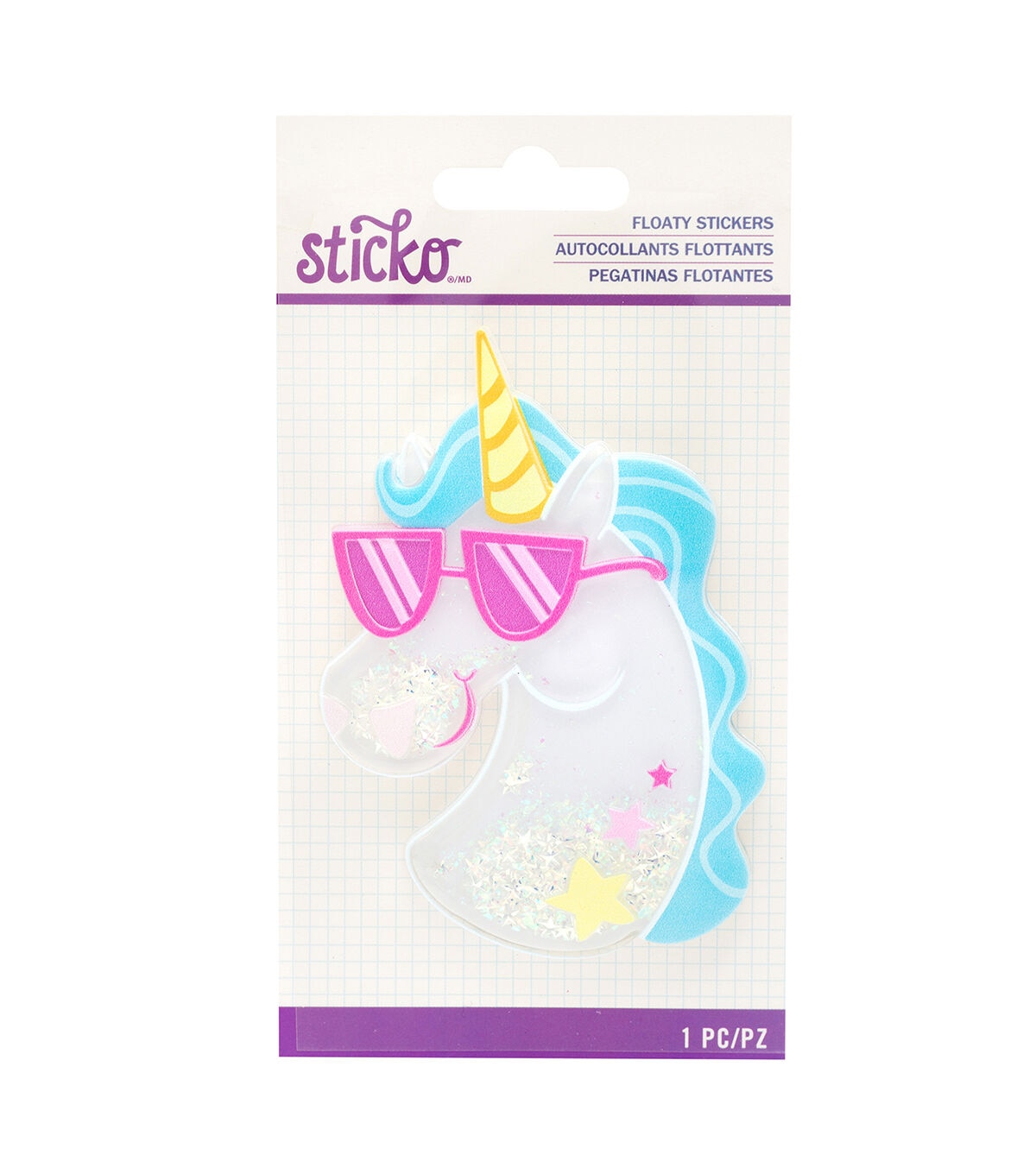 Add a little something special to your paper projects with Floaty Stickers by Sticko! Stickers come in a variety of sizes, shapes and designs to choose from. Each sticker is filled to the brim with glitter and sequins to give your projects an extra bit of shine and style. This package includes one unicorn floaty sticker.