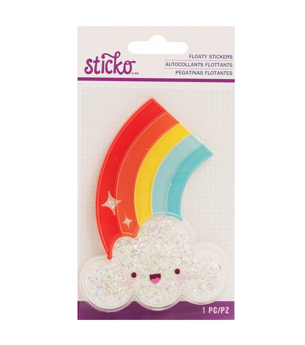 Add a little something special to your paper projects with Floaty Stickers by Sticko! Stickers come in a variety of sizes, shapes and designs to choose from. Each sticker is filled to the brim with glitter and sequins to give your projects an extra bit of shine and style. This package includes one rainbow floaty sticker.