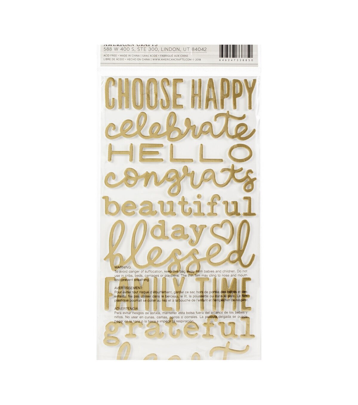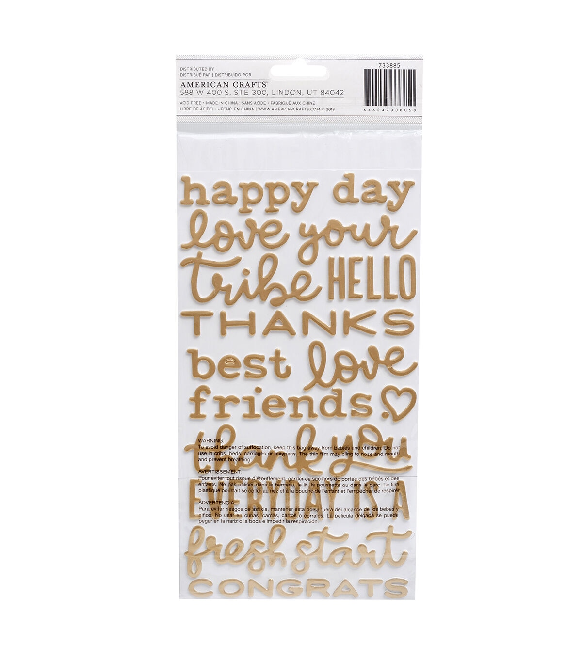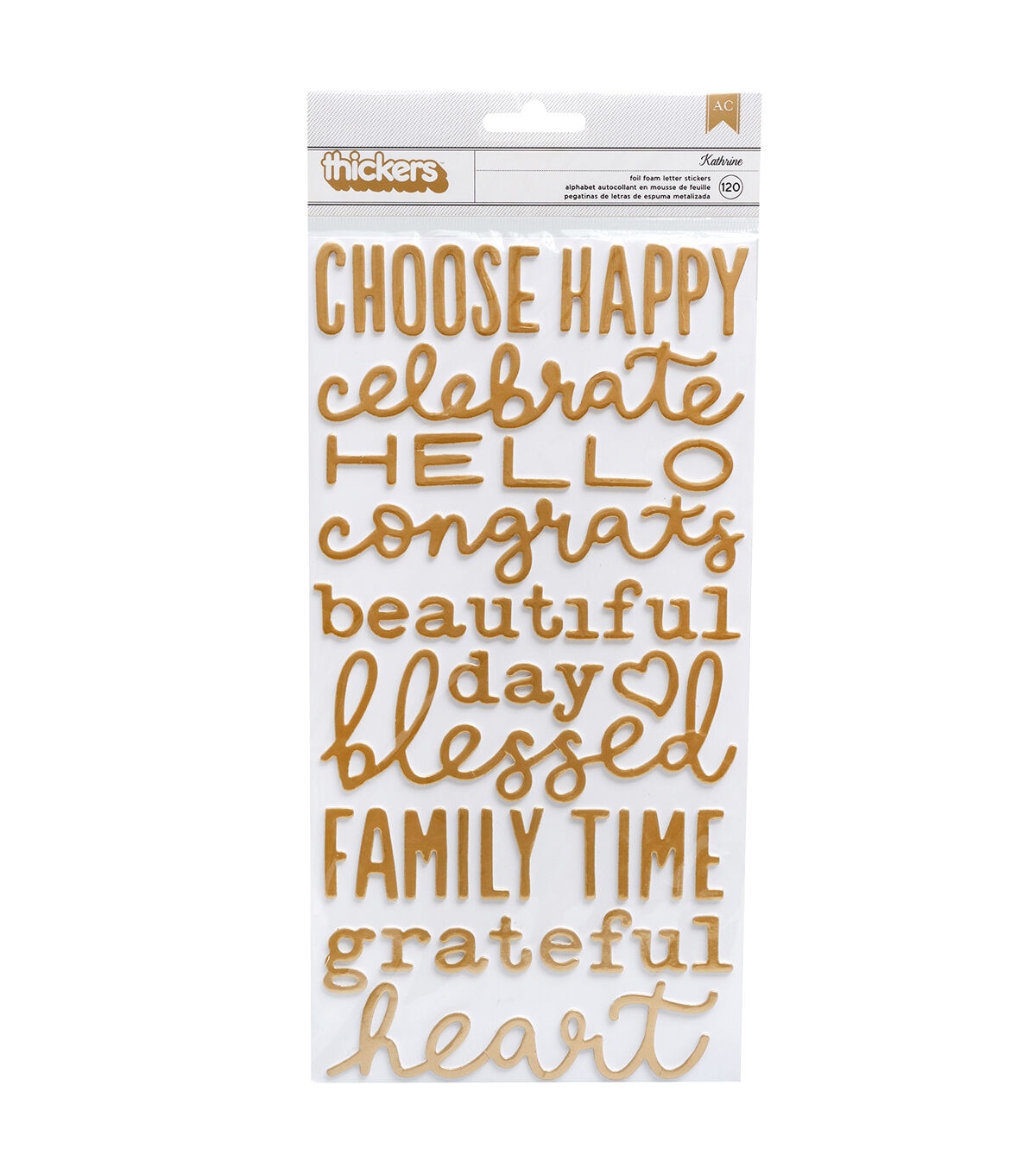 These Word Thickers make the perfect headlines and eye-catching accents for your scrapbook pages! They come in a beautiful gold foil with lots of words and phrases to choose from. This package includes over 100 Thickers words in gold foil.