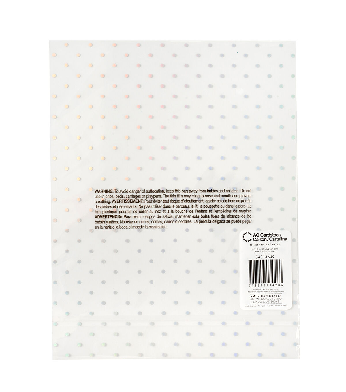 Great projects begin with great paper, and American Crafts has the best. Specialty sheets each feature a beautiful finish to add a little something extra to projects like scrapbooks, cards, home decor, and mixed media projects. They're the perfect size and come in a wide variety of styles and colors. Mix and match your favorites and get creative! Features: 8.5x11 inches, acetate, iridescent foil dot design.