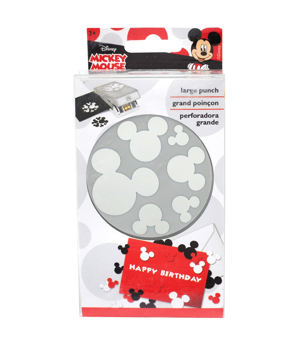 Cut out embellishments in the shape of your favorite mouse with EK Punches! This easy-to-use punch is perfect for creating Mickey-shaped confetti birthday parties, handmade cards, and so much more. This package includes one Mickey confetti punch. Customize with your favorite patterned papers.