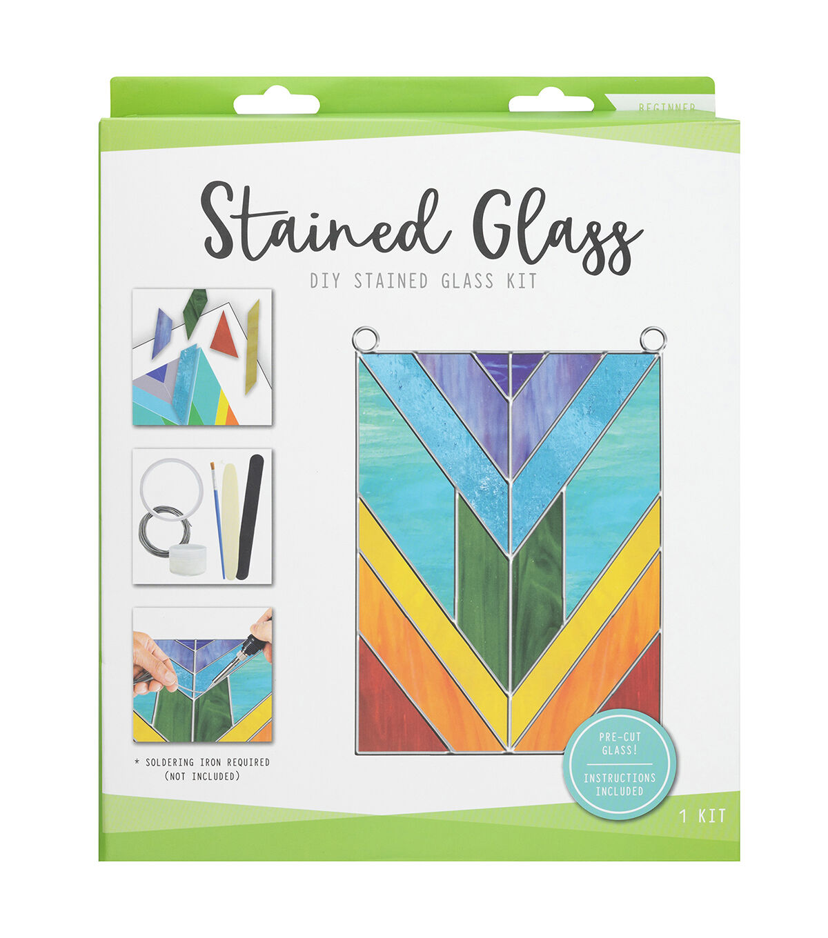 Create stunning works of light-catching art with DIY stained glass kits! Each kit comes with everything you need to learn a new skill or improve on ones you already have. These unique sets come in three different skill levels--beginner, intermediate, and advanced--so you can work your way up or enjoy them at your own pace. Once you're finished, hang them up near a window or light and watch your art shine! This package includes: Pre-cut stained glass, copper foil tape, tallow flux, solder wire, easy-to-follow instructions, flux brush, burnishing tool, sanding tool, pattern sheet, jump rings, and chain. (Soldering iron not included)