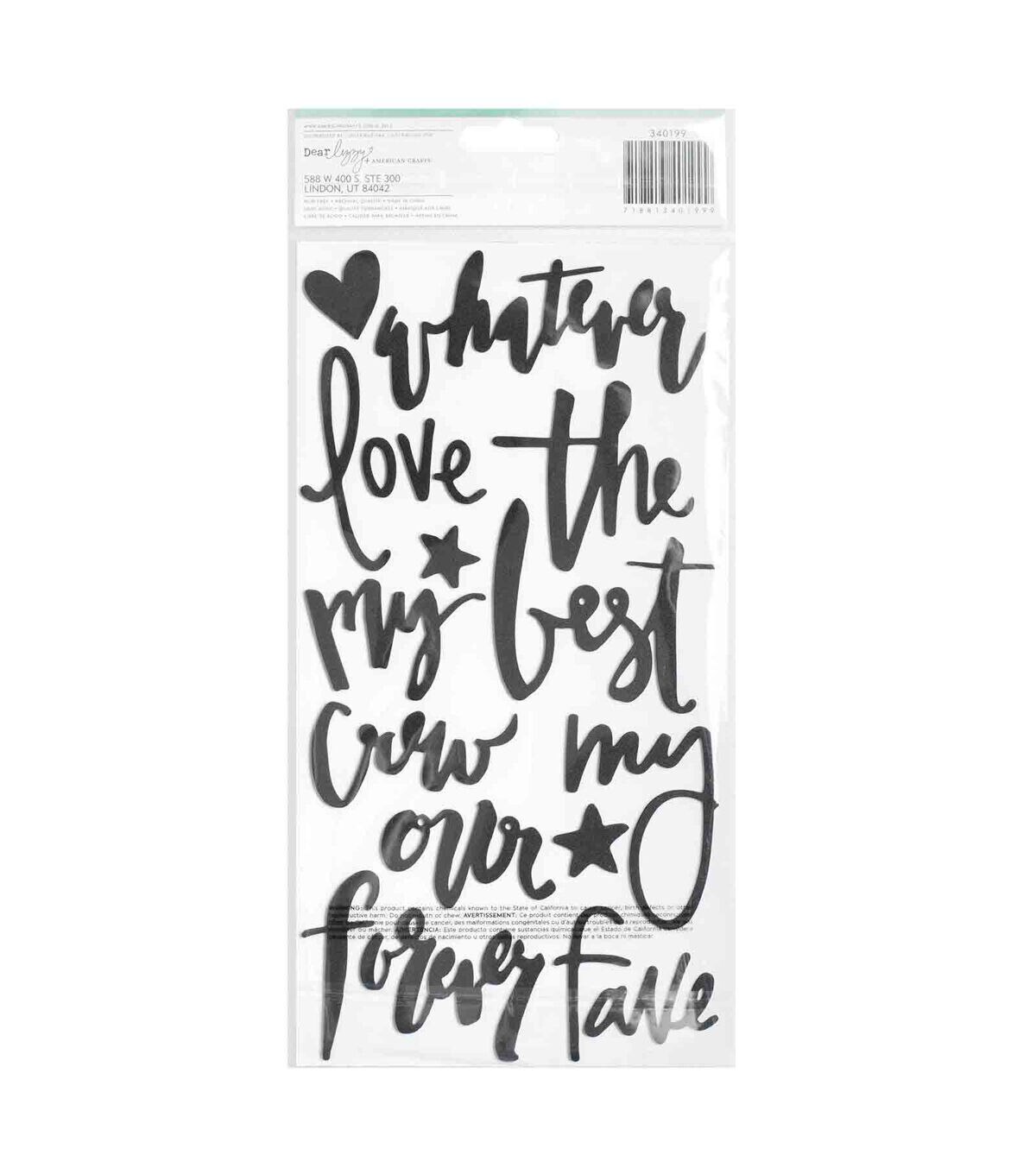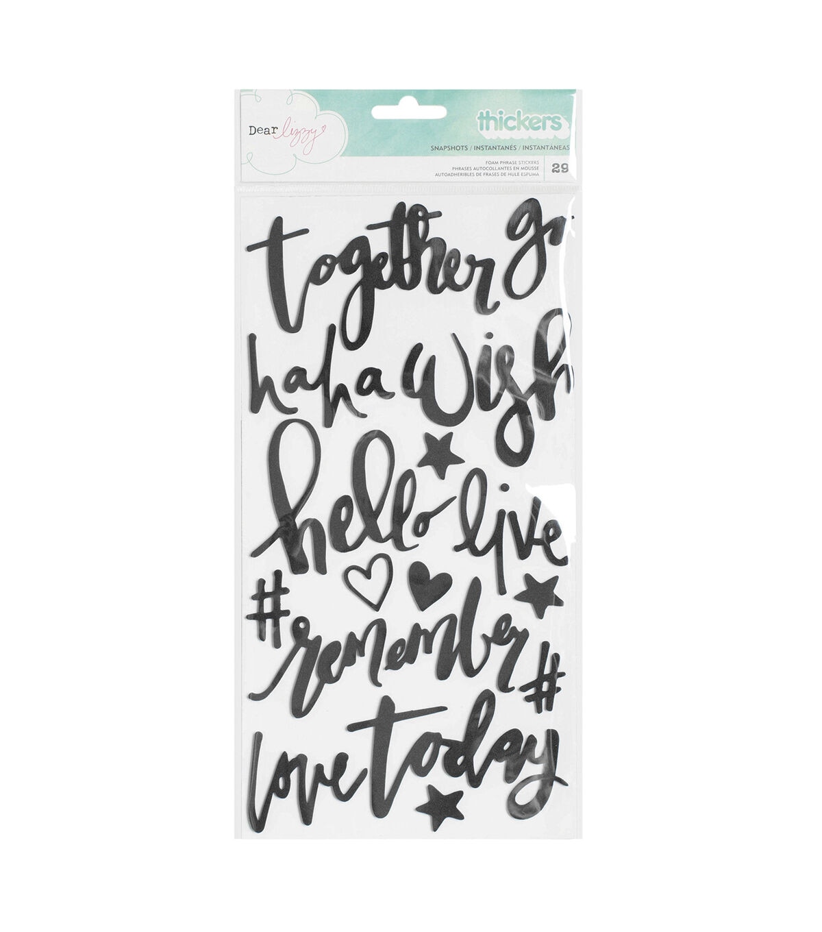 Add a fun accent to projects with Thickers phrases! They're perfect for adding a bit of dimension and style to planners, cards, scrapbooks and more. This package includes 29 phrases in a chic black color.