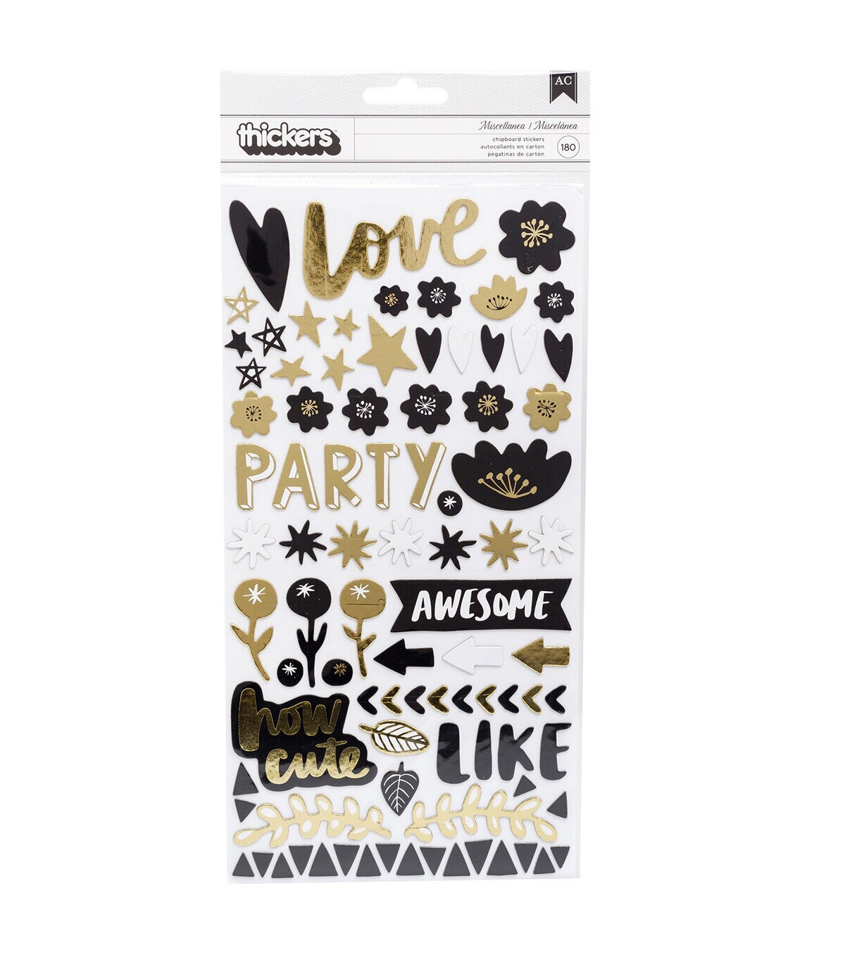 Illuminate life's magical moments with gold and black accents. These adorable Thickers embrace both light and dark with their shiny gold and chic black palette. Use them to create fun titles and cute embellishments. This package includes 180 black and gold Thickers in an assortment of phrases and embellishments.