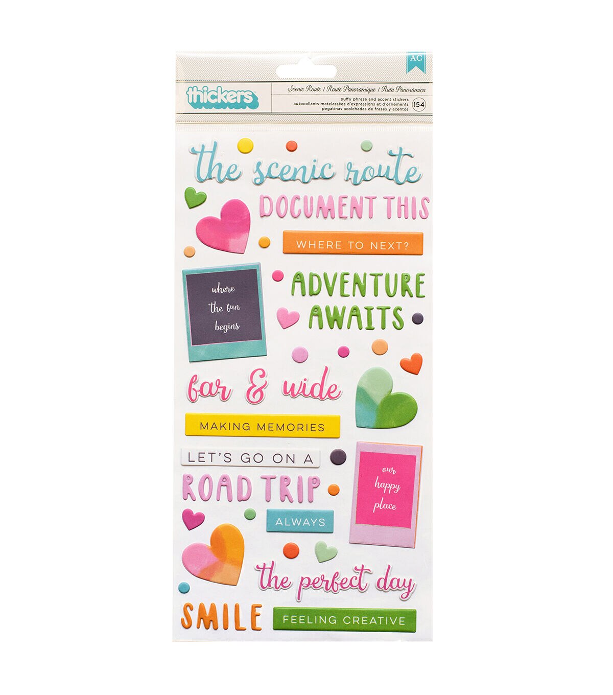 Add a pop of color and a cute phrase to your projects with Thickers! They're great for scrapbook pages, handmade cards, journals, planners, and so much more. This package includes 154 Thickers phrases and embellishments in a variety of colors.