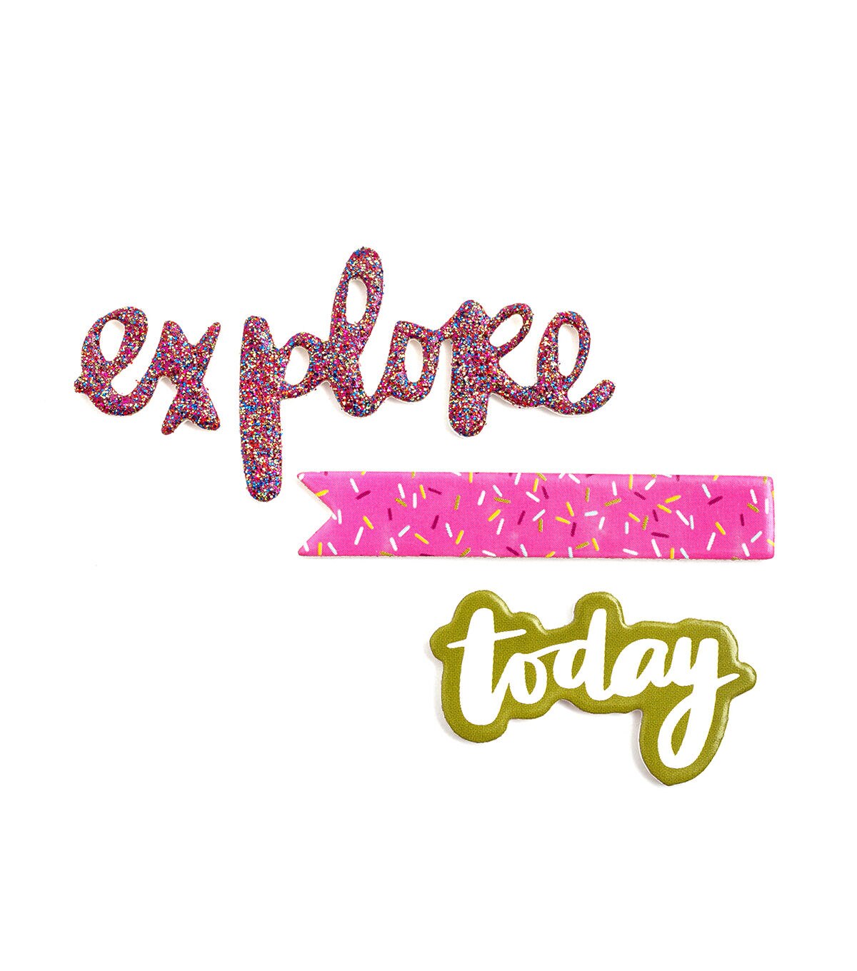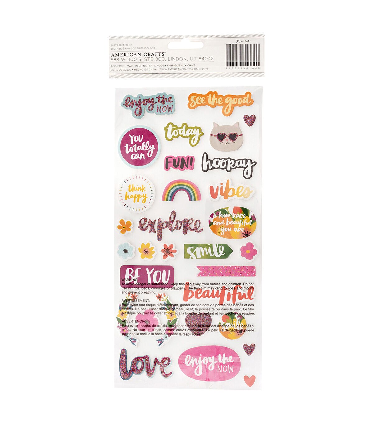 Enjoy the here and now with Slice of Life by Amy Tangerine. Add some shine and dimension to projects with foam stickers! These shiny stickers feature a glitter finish, and come in a variety of phrases, icons, and other embellishments. This package includes 64 foam stickers.