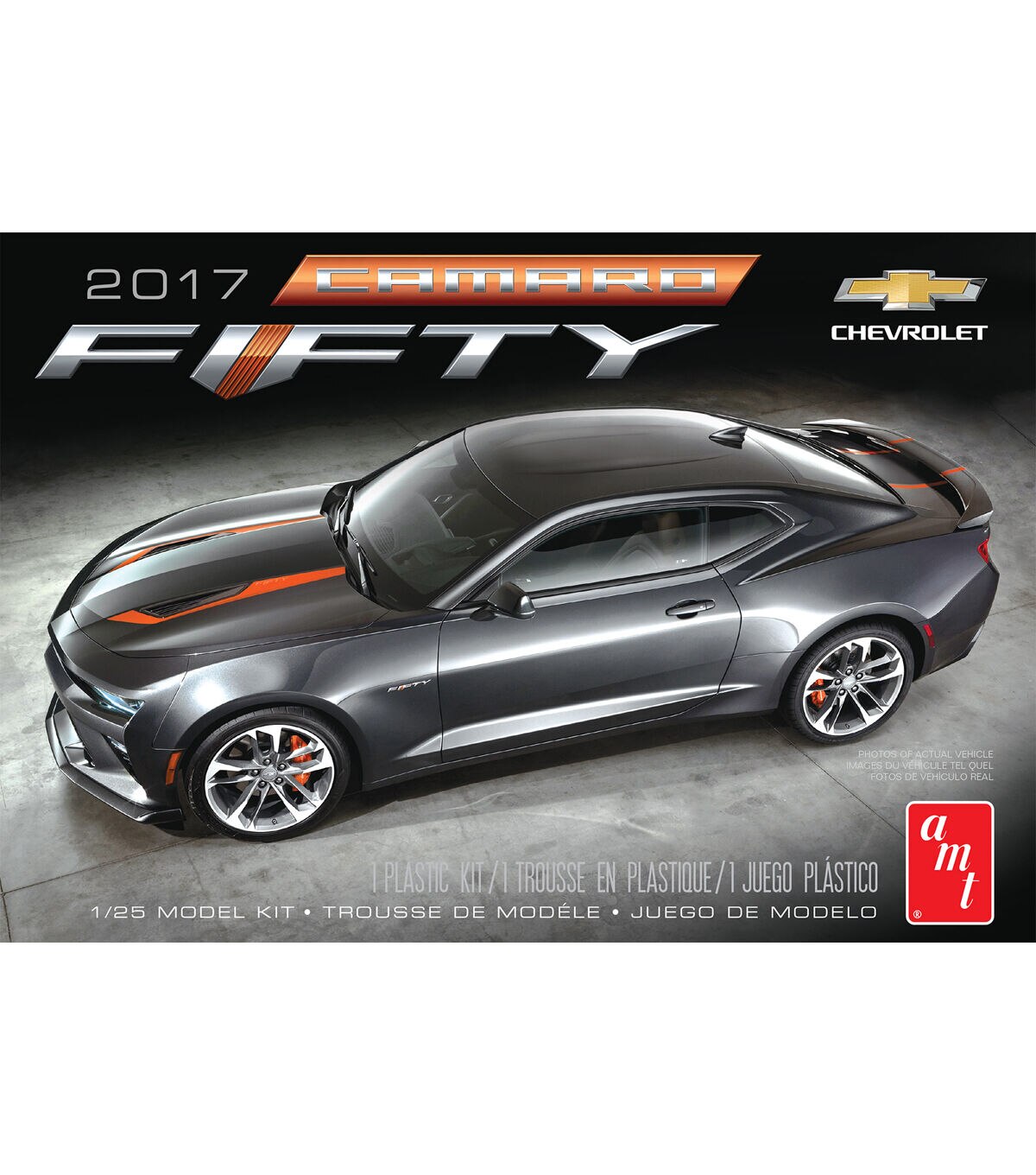 The AMT 2017 Chevrolet Camaro 50th Anniversary 1:25 Scale Model Car Kit is designed after the 50th anniversary of the Chevrolet Camaro. It has a super-detailed engine, chassis and interior. This car has colorful decals for authentic markings, while the body is molded in black that doesn’t require any painting.