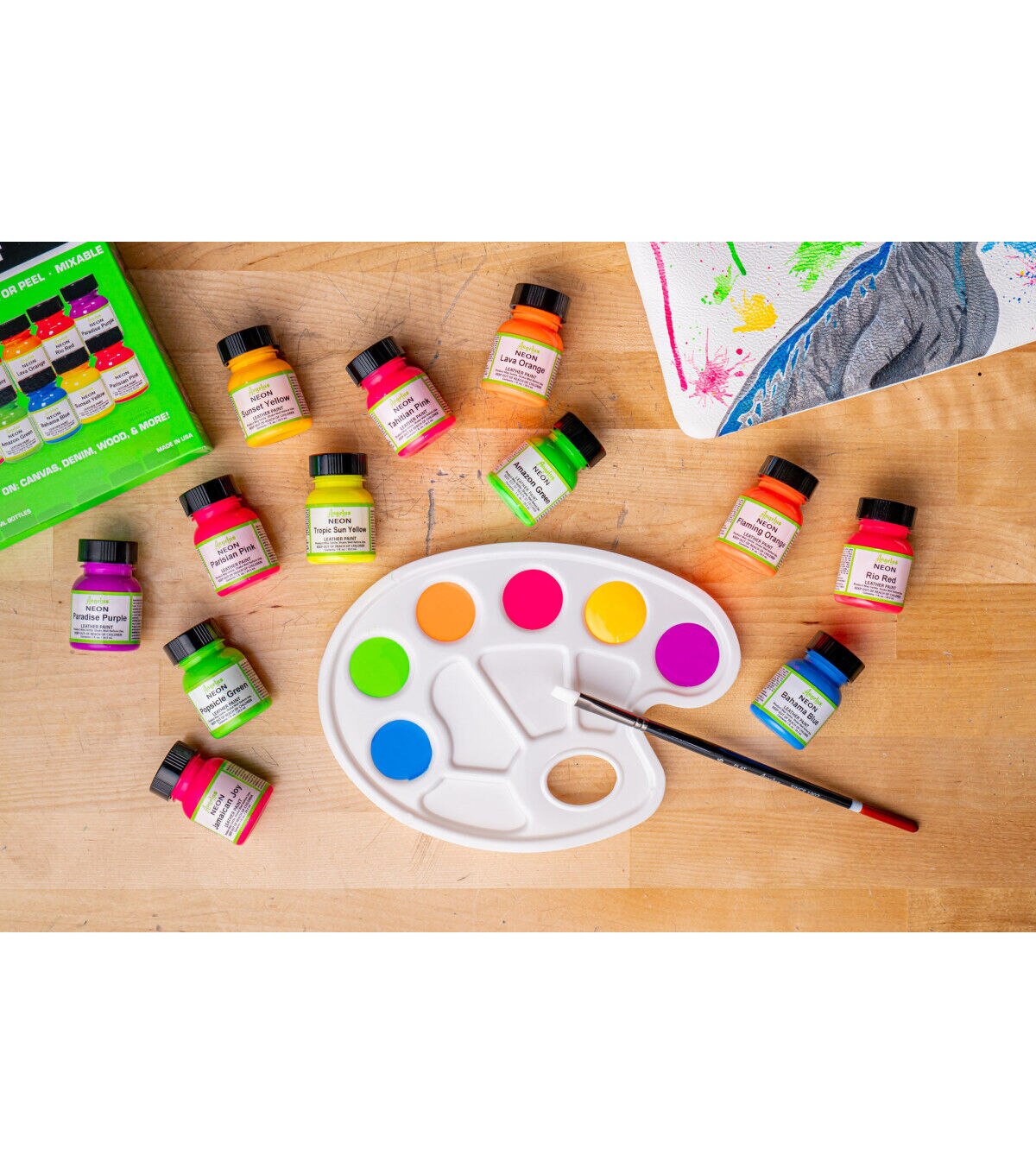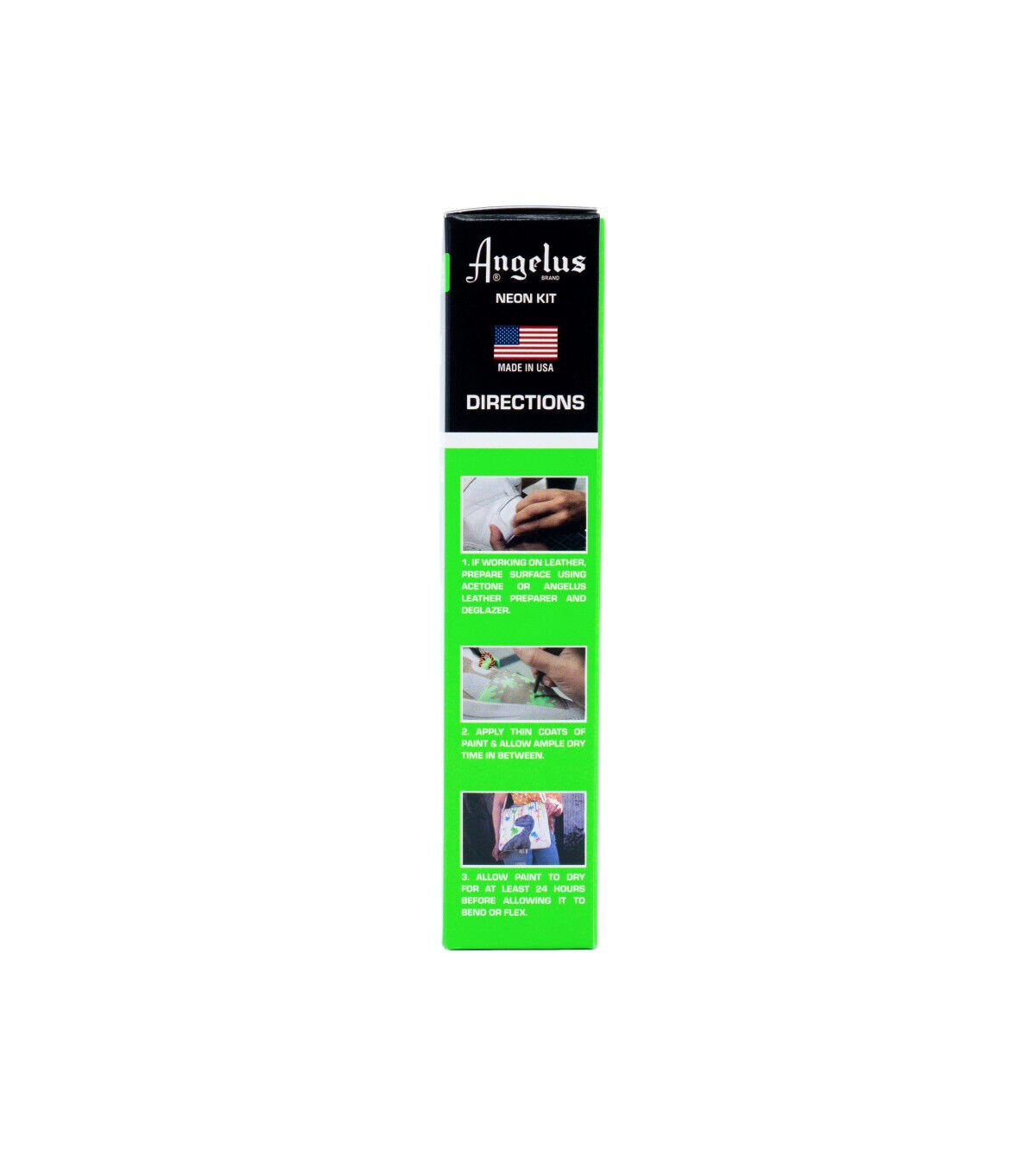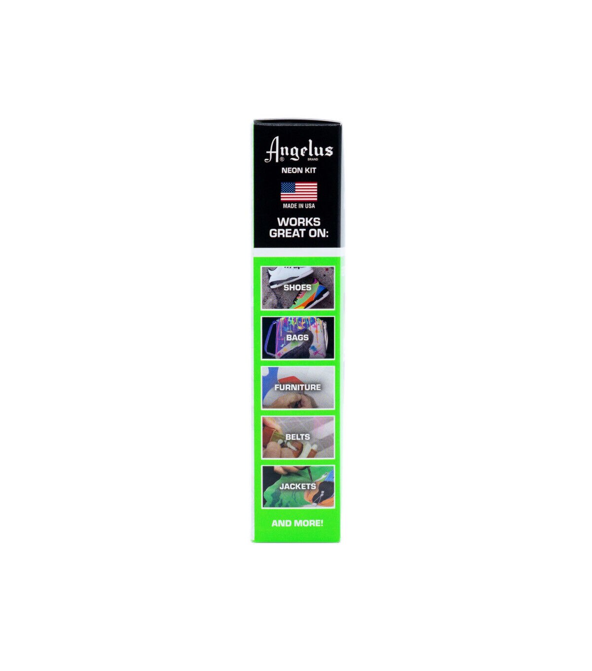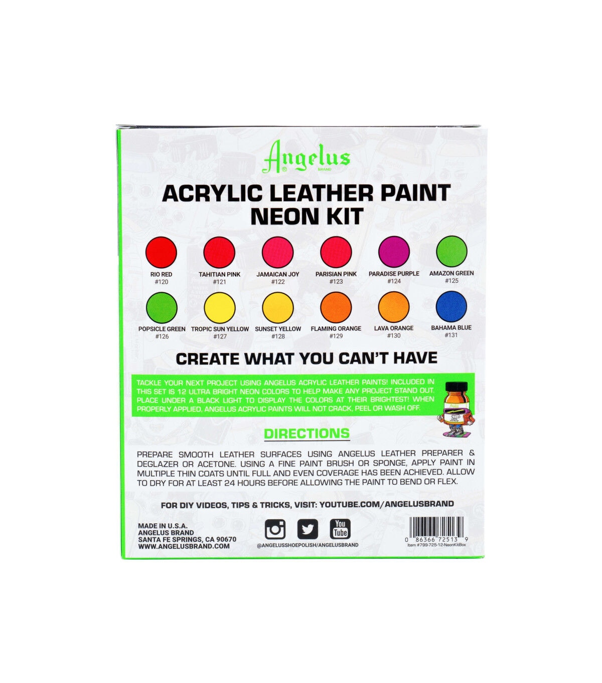 Save BIG when purchasing the complete line of Angelus Neon Colors. This Kit includes one each of the entire Angelus Neon Acrylic Paint 1 oz. line -- Amazon Green, Bahama Blue, Flaming Orange, Jamaican Joy, Lava Orange, Paradise Purple, Parisian Pink, Popsicle Green, Rio Red, Sunset Yellow, Tahitian Pink, & Tropic Sun Yellow.