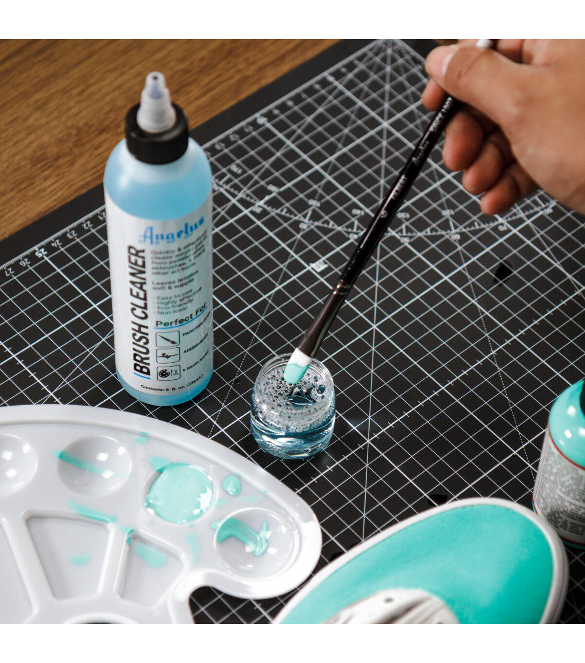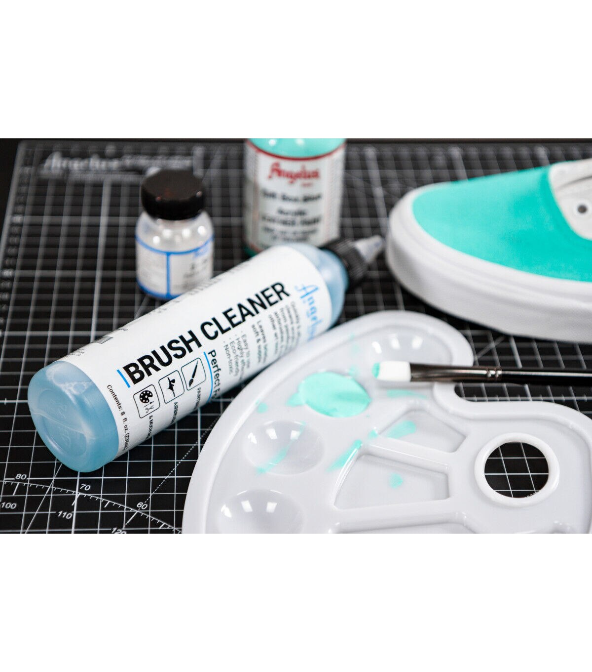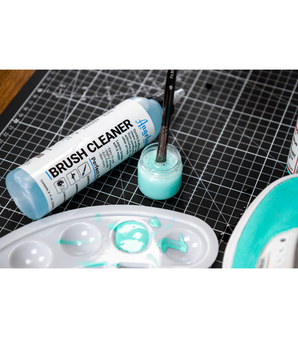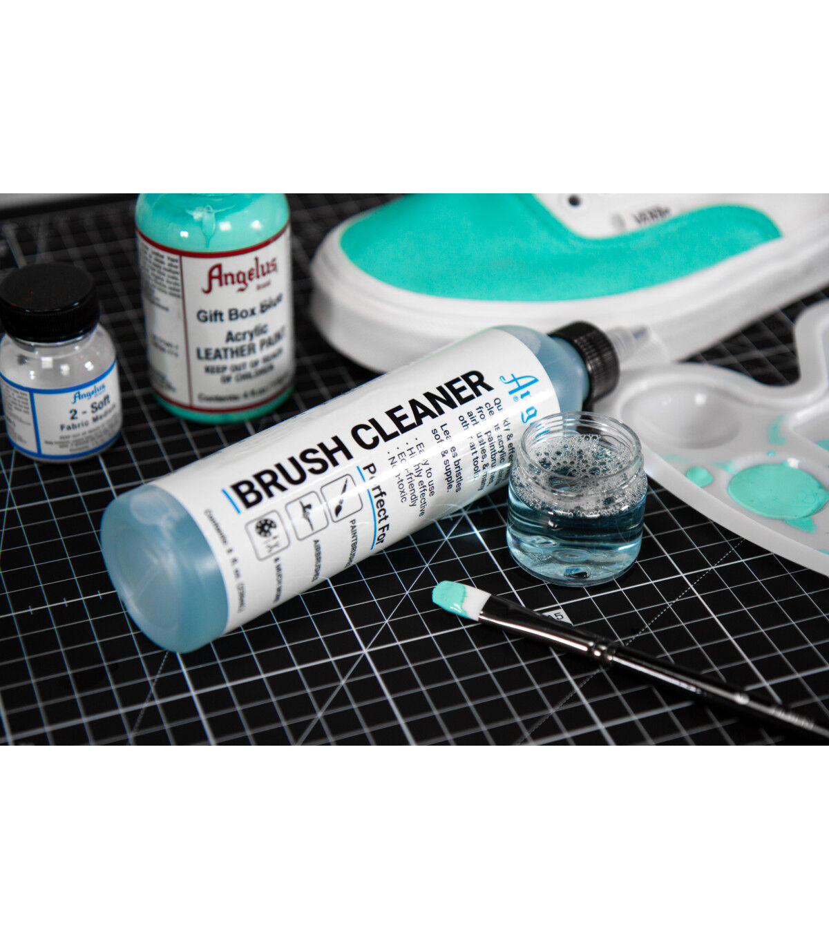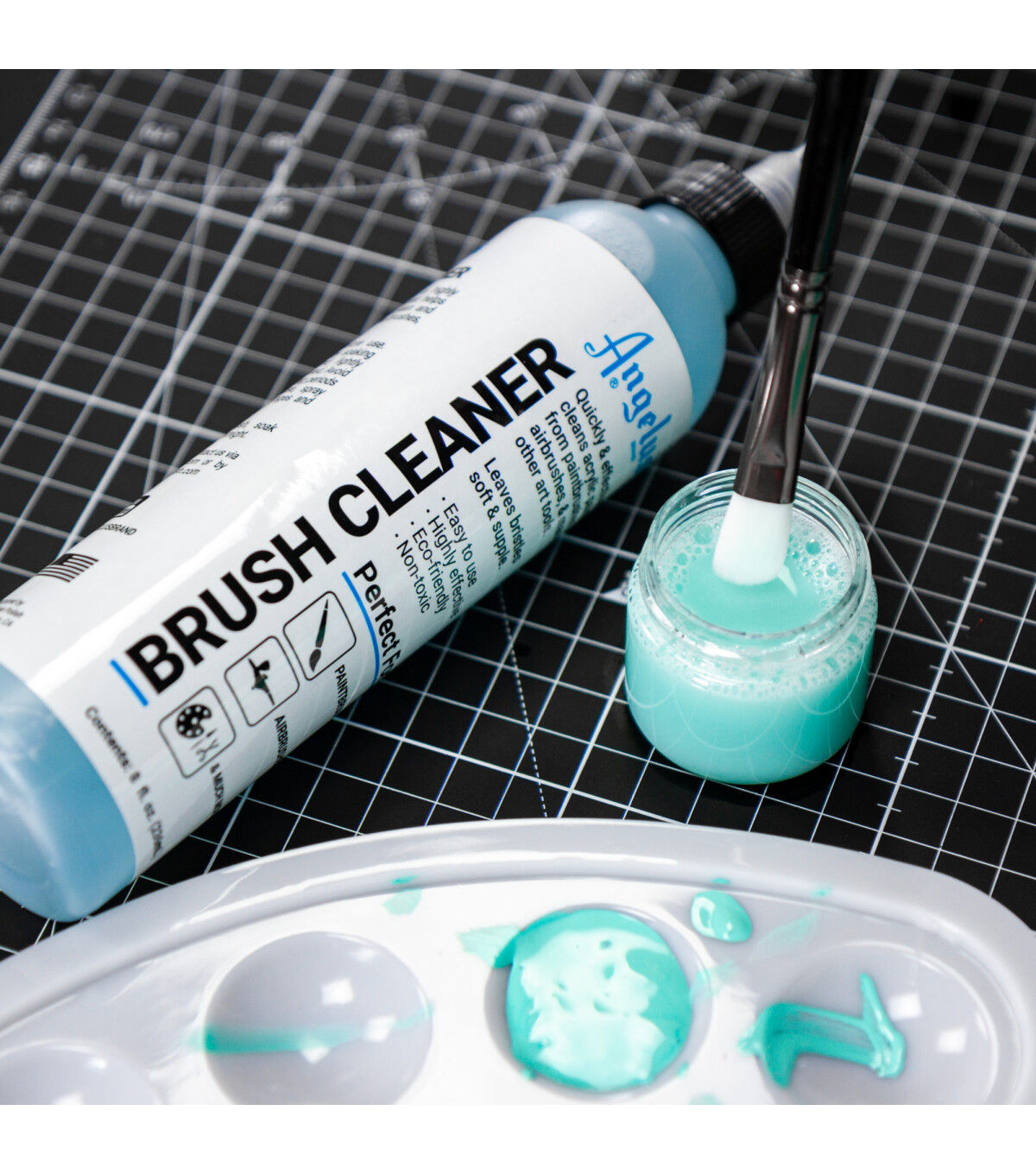 <ul><li>This Brush Cleaner quickly and effectively cleans acrylic paints from airbrushes, paint brushes and many other art tools. This non-toxic cleaner contains a conditioning agent that leaves bristles feeling soft and supple.</li><li>To clean paint brushes, simply soak and agitate bristles.</li><li>Soak airbrush parts in cleaner overnight without the fear of damaging expensive pieces.</li><li>Features:Comes with a twist-top cap for easy pouring<.li><li>Non-toxic</li><li>Comes in an 8 oz. bottle</li></ul>