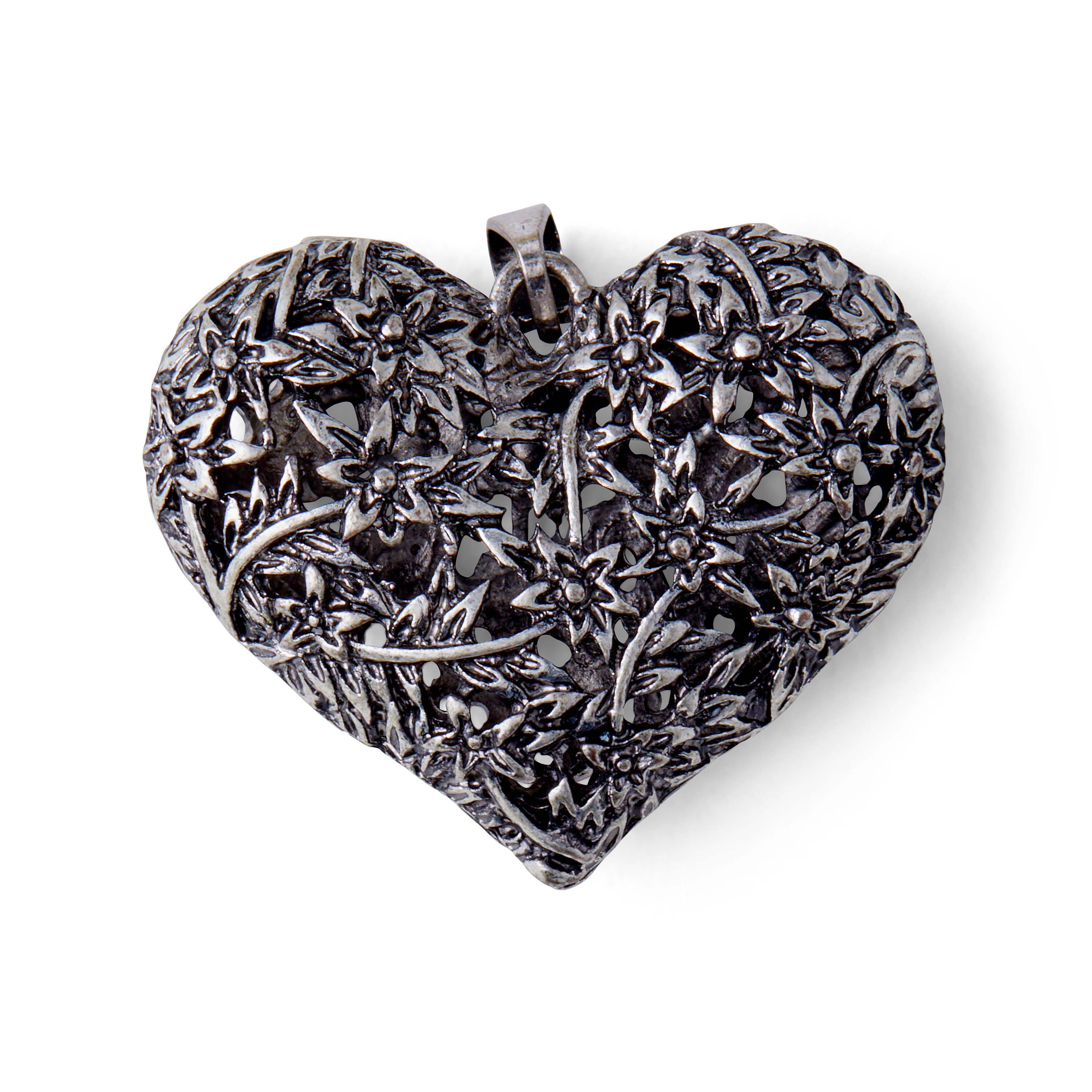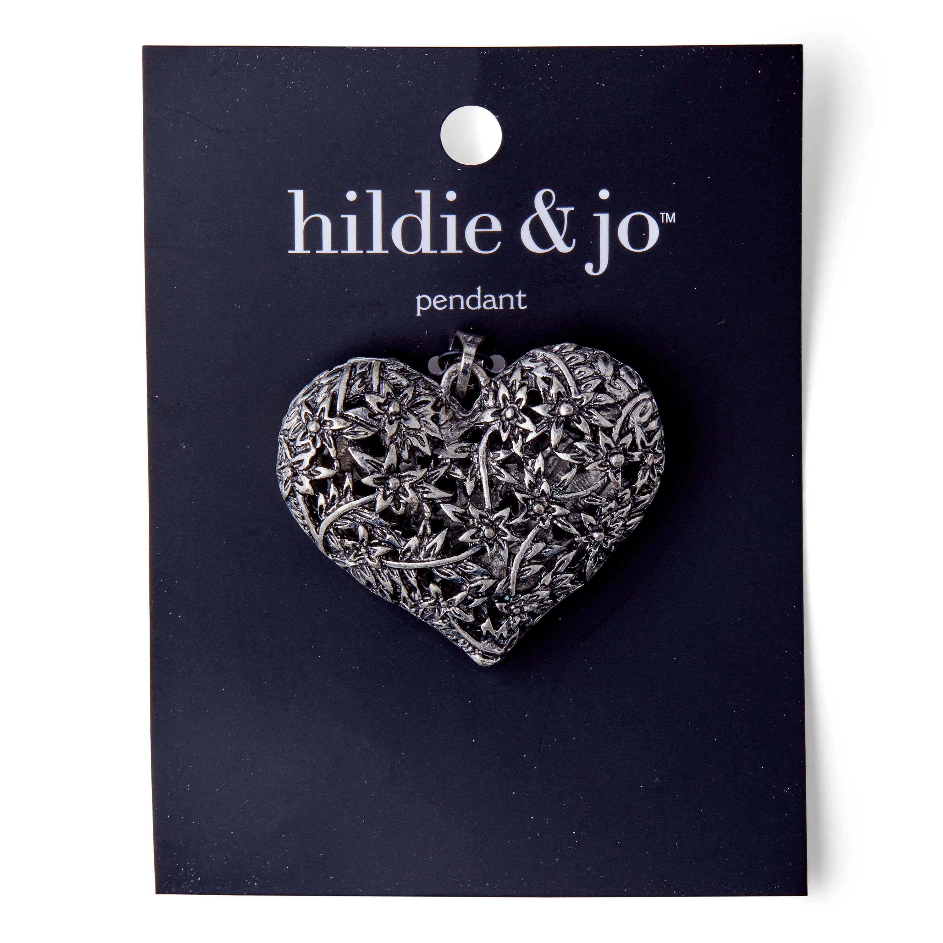 Personalize your jewelry projects by using the hildie & jo Heart Pendant to create a stunning necklace. Attractive and charming, this pendant is carved in a heart shape and etched with a floral design on its surface. It has a jump ring for easy attachment. Wear it on special occasions to flaunt your style.